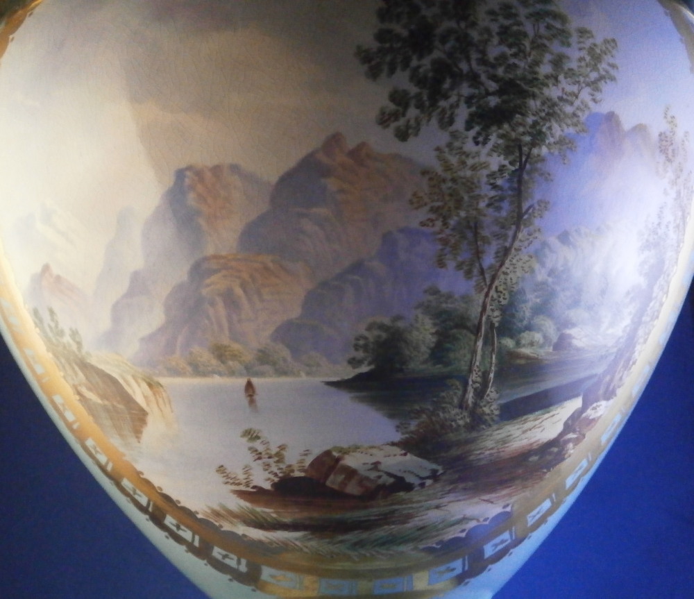 Large Scenic Vase w/ Ram's Head Handles #1