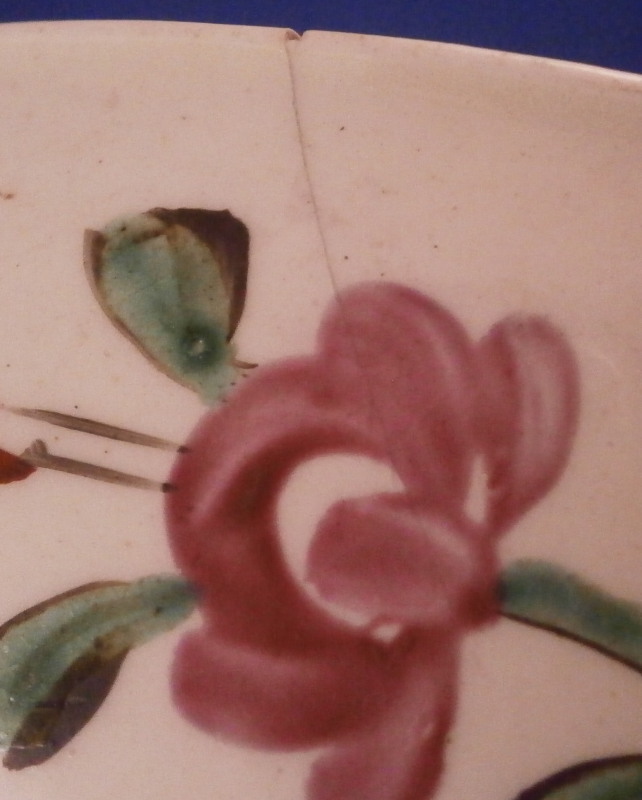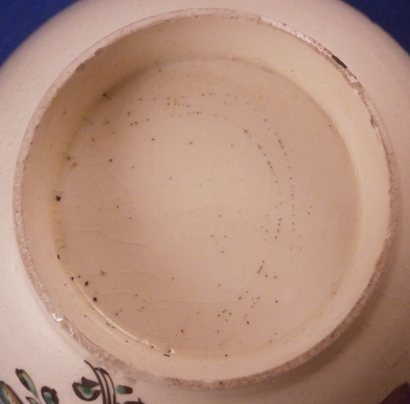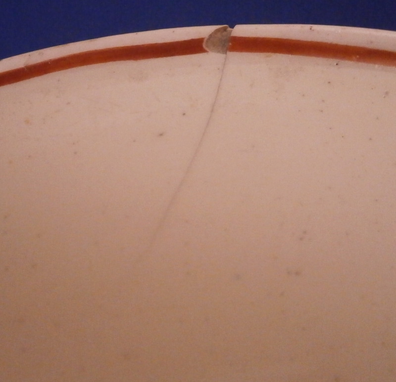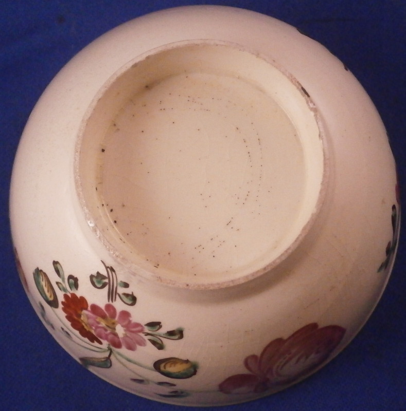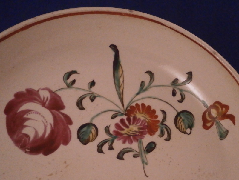 This is a cute teabowl and saucer set made of creamware in England in the 18th century. I normally stick more to porcelain but this was a very pleasant set to look at with more colorful flowers than one normally sees that I could not fight the urge to buy them :) The cup & saucer are nicely hand painted with a larger floral arrangements as well as smaller flowers and a red line trim around the edge. Single blossom to the inside bottom of the cup is a nice addition and shows the age and quality of the pieces. The set is of very nice quality and in decent condition. The saucer has very minimal wear and some off colored spots in the glaze which look to be original to the making. The very edge has some minor flaking to the glaze in two spots. Very minor chip to the inside foot underneath. The cup has some minor crazing to the glaze in one area, a chip to the rim with a hairline going into the bowl from there. It's very tight and stable. Still display very well. The saucer is 1.25 inches tall with a diameter of 5.375 inches. The tea bowl is 1.875 inches tall with a diameter of 3.5 inches. Please email me for more information or other pictures.