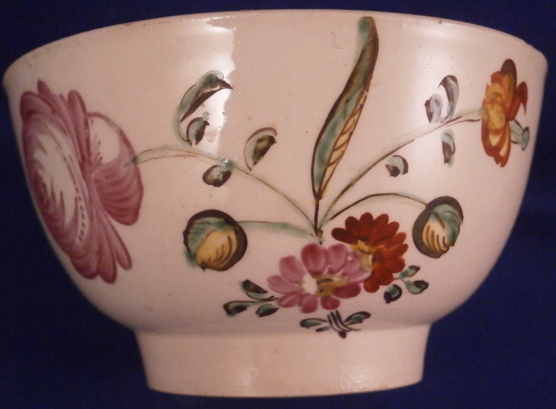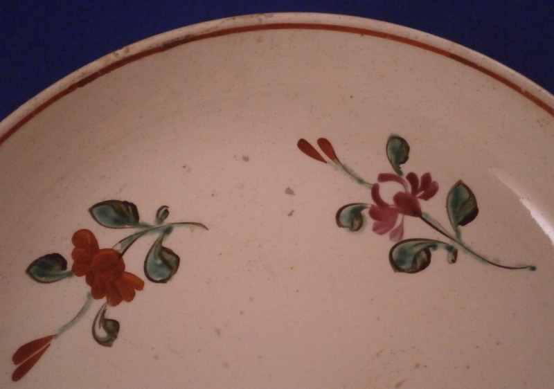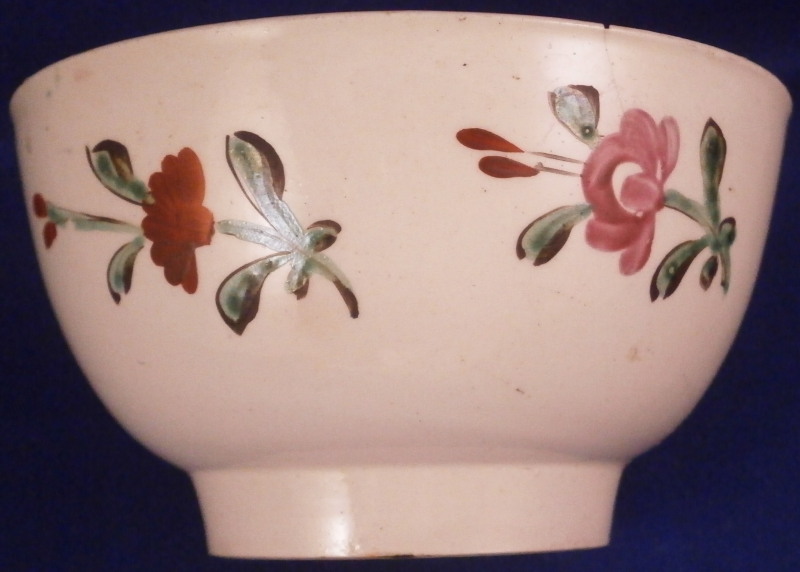 Creamware Cup & Saucer w/Polychrome Flowers #1