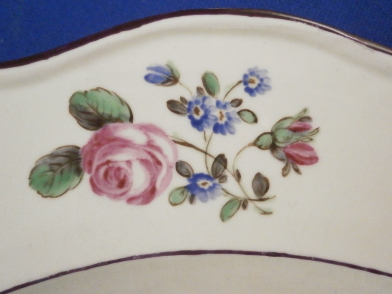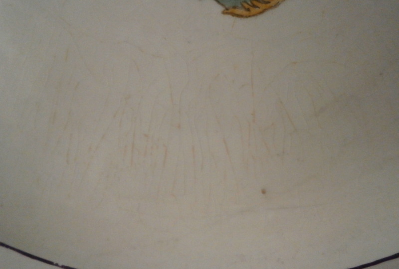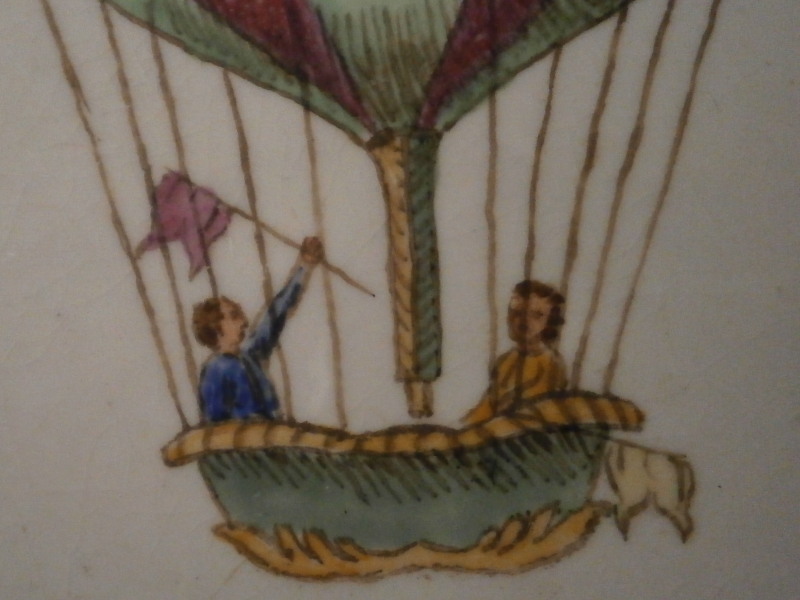 This is a very rare plate made by the Naples ( Real Fabbrica Ferdinandea ) factory around 1783. It is nicely hand painted with a really special scene of the first manned hydrogen balloon flight took place on 1st December 1783 when Professor Jacques Charles and Nicolas Louis Robert ascended from the Jardin des Tuileries in Paris . This type of hydrogen ballon was hence called a Charlière as opposed to a Montgolfière which was the name for a regular hot air balloon. The first flights were such huge events that they made souvenirs of all sorts including on porcelain for the well to do people. I have seen examples by Sevres and Naples before. There is a plate like this in the Albuquerque Balloon Museum as well as Smithsonian Air and Space museum where it is wrongly identified as being made by Niderviller . Just some fun facts I didn't know before I owned this piece. The plate has the ballon in the center with the two people in the gondola, three nice floral arrangements along the edge, three bugs along the edge, a small flower hiding a manufacturing flaw in the well and a nicely shaped rim with a brown trim to the edge and a black line around the edge of the well. A stunning plate! The plate is marked underneath with the RF mark under a corwn as shown. The RF stands for Rex Ferdinandus for Ferdinand IV who revived the manufactory at Portici in 1771. The plate is 1.125 inch tall and 9.75 inches in diameter. It is in great condition for its age with some flaking to the brown edge trim, the blue color of the balloon didn't fire perfectly and crazing to the glaze which has stained a bit under the balloon scene. An amazing and stunning piece to display with a design about as rare as they come. Please email me for more information or other pictures.