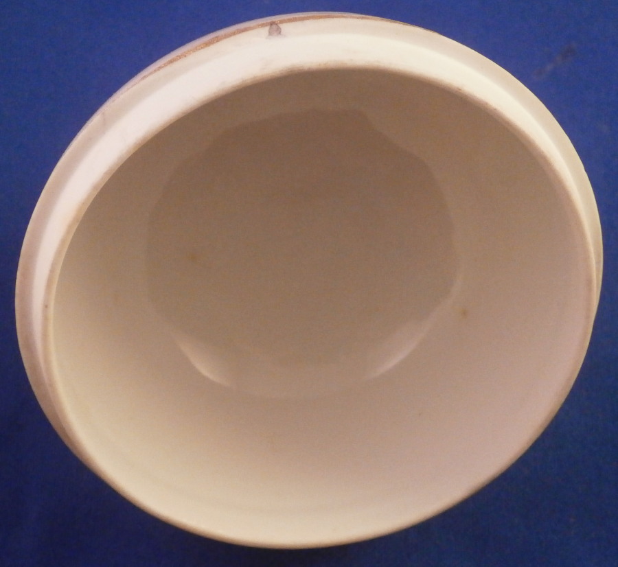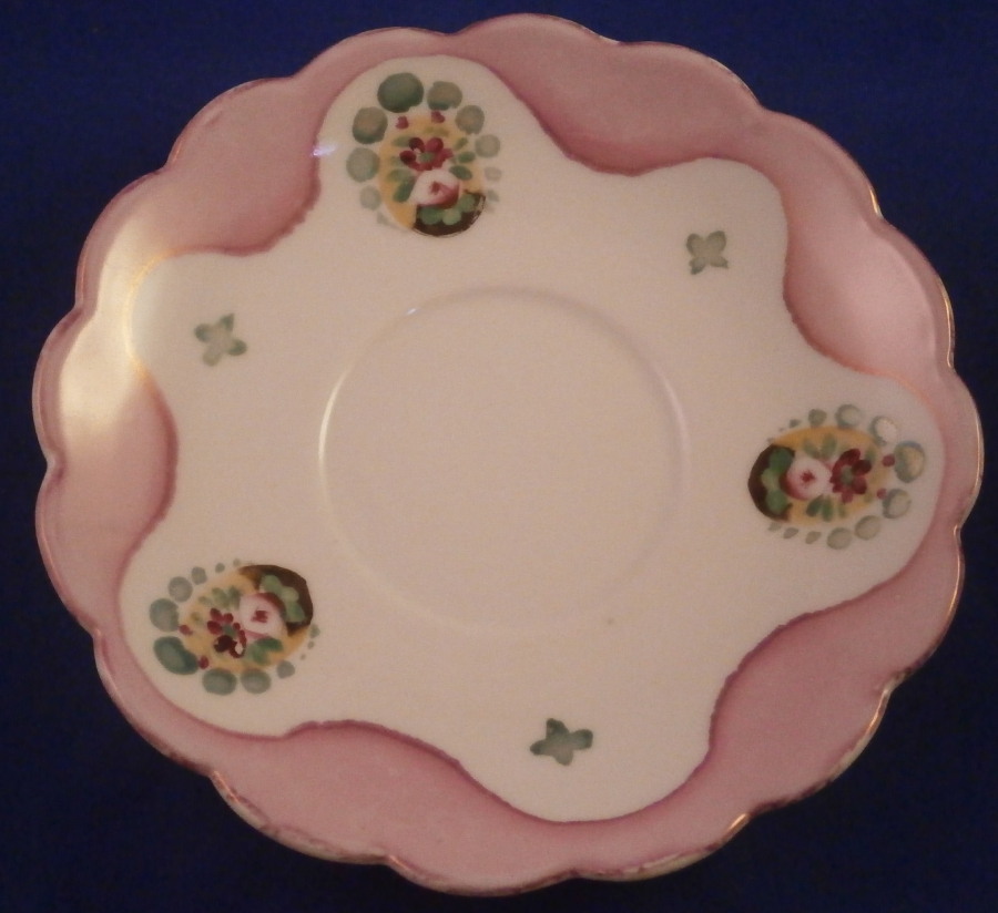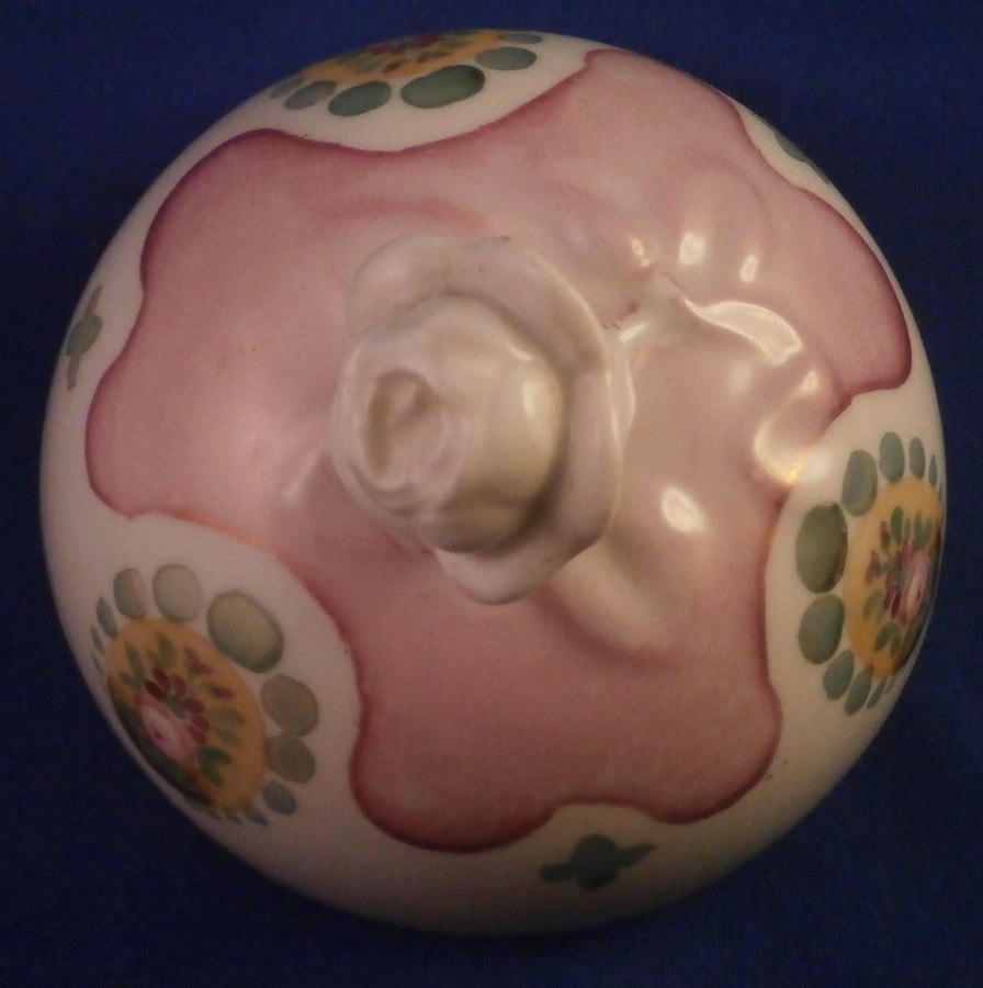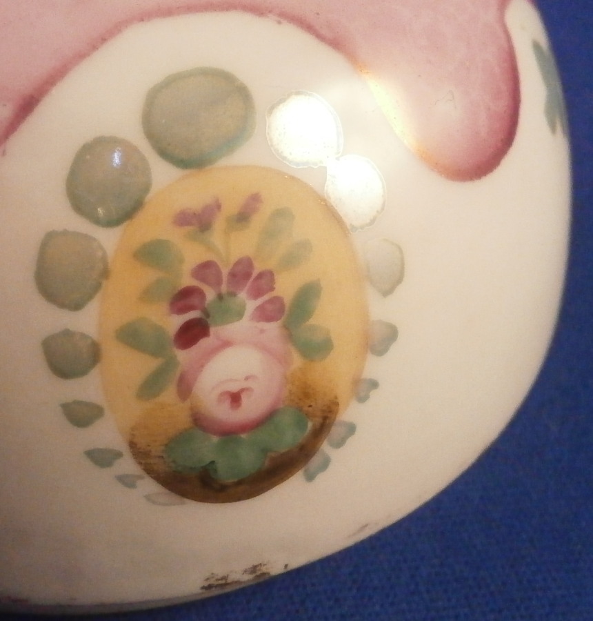 This is a lidded cup and saucer made by Pirkenhammer which is now located in the Czech Republic around 1850. The factory was located in a Bohemian village Pirkenhammer ( Brezova ) near Karlovy Vary ( Karlsbad ). Mr. Hoeke founded the factory around 1803 with the help of the Greiner family (from the Thuringia area). In about 1810 Christian Fischer & Reichenbach bought it and after 1845 Reichenbach was gone. In 1852 Christian's daughter Wilhelmine married her cousin Ludwig von Mieg. The company was now Fischer & Mieg. They won a few very high prestige awards for their porcelain. After the 1840's the porcelain became more decorative and higher quality. The company is still around today which is a rare feat. The set is hand painted with a pink and purple luster design along the rim with little panels of flowers and green crosses. The lid has a nice floral finial. There used to be a lot of gold trim on top of the pink but that is mostly gone now. I originally thought these are Russian until I found the mark on them. Both pieces are marked with an impressed F&M mark as well as a number 2. Impossible to see unless you shine a bright light through it. The cup is 3 inches tall and 3.5 inches in diameter. The lid adds another 2.375 inches in height. The saucer is 0.875 inches tall and 5.75 inches in diameter. In good condition with the missing gold already mentioned. Still looks great and these early lidded cups are hard to find. Please email me for more information or other pictures.