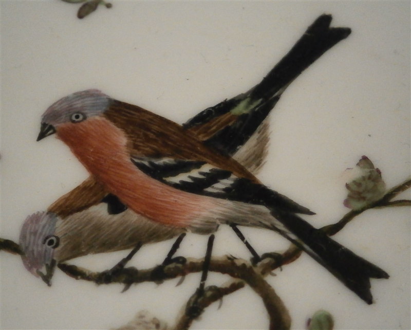 This is a great plate made by Frankenthal in 1787. It is hand painted with a large bird scene in the center with lots of small scattered flowers throughout. The center scene includes two birds sitting on a tree with a bit of a landscape design around that. Very nice! Nice rim shape highlighted with a brown edge trim. These pieces are rather hard to find made by Frankenthal so it was a must have for me :) Very elegant and of good quality. The plate is marked with the CT mark under the crown in underglaze blue as well as an incised F and 1 and a blue 87 on the footring. The plate is 1.25 inches tall and has a diameter of 9.5 inches. It is in great condition with some very minor to the brown trim on the rim. Display perfectly! Please email me for more information or other pictures.