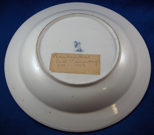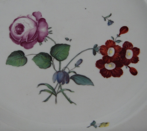 This is a plate made by Frankenthal in 1757 during the early period. In terms of porcelain this is a very simple plate but at the same time very elegant. Nothing to distract from what porcelain is all about. The painting and shapes. The bowl is handpainted with a nice floral arrangement as well as two small flowers and there are three flowers painted on the rim as well. The plate is marked with the underglaze blue lion mark used only until 1762. There is also an impressed PHI near the footring. The plate is 1.375 inches tall and 8.875 inches in diameter. It is in superb original condition. Please email me for more information or other pictures.