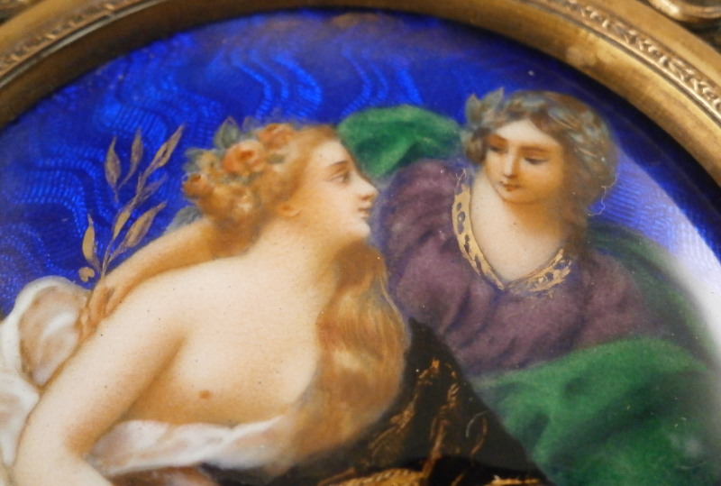 Guilloche / Limoges Enamel Scenic Plaque in Brass Box