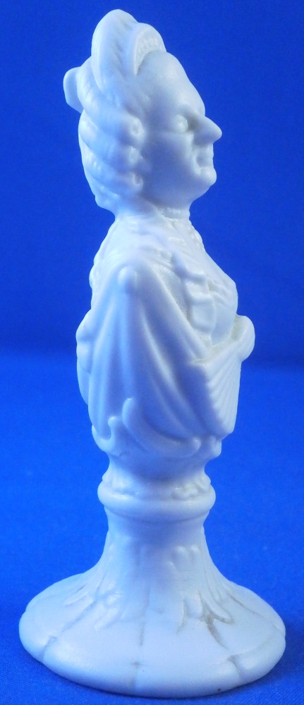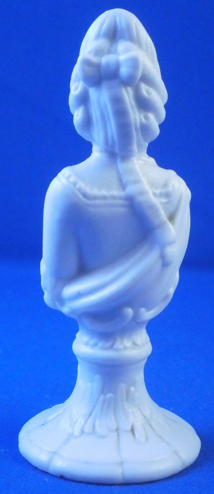 This is a great chess piece from a partial chess set I own made by Fuerstenberg in the 20th century . Sadly some pieces are missing and some are damaged and repaired so I decided to sell each piece separately so here is your chance to complete the set you have or replace a damaged pieces with a perfect one. The set was made in the Rococo style originally in 1947 for the 200 year anniversary and then again in 1982. A very nice set with figures made in the likeness of the royalty of the house of Brunswick as well as some other important figures from the 18th century. Both sides are done in Parian porcelain (meaning an unglazed form of porcelain) - one side being white and the other green or celadon in color. On the white side here we have the white Queen piece. Sadly while she displays perfectly if you look very close you see her head has been reglued. She is about 3.5 inches tall and marked with the blue F mark as shown. Please email me for more information or photos.