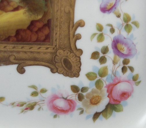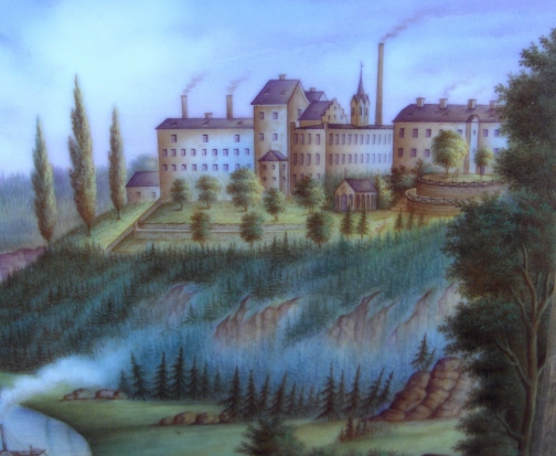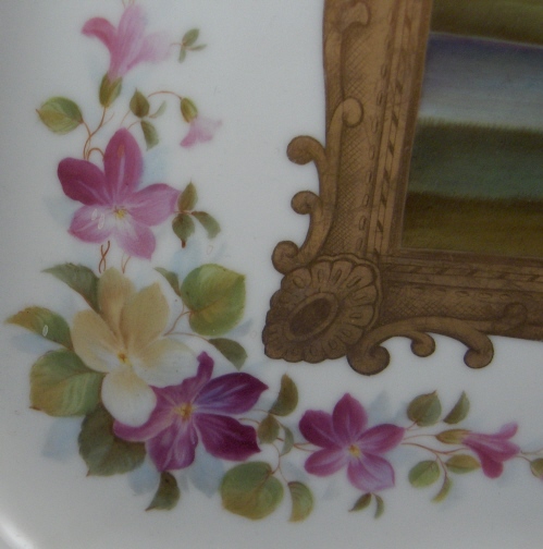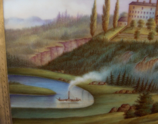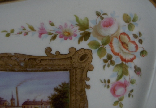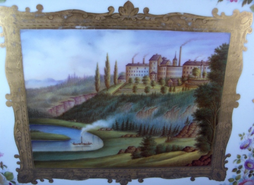 This is a tray made by Fuerstenberg in the mid 19th century. It is one of my favorite pieces since it reminds me of home. I was born only a few minutes from the place pictured in this scene. The bend in the river Weser. This tray has a handpainted scene in the center of the Fuerstenberg castle - the site this piece was made at. Surrounded by flowers and gold trim and it is even titled underneath Fuerstenberg! The tray is in superb condition with very minor wear to the gold in a spot or two. Mostly on the handles. It is of good size being 1.5 inches tall, 13 inches wide and 10 inches deep. Marked underneath with the blue script F mark used around 1860-1870 as well as incised letters FR. Please email me for more information or photos.