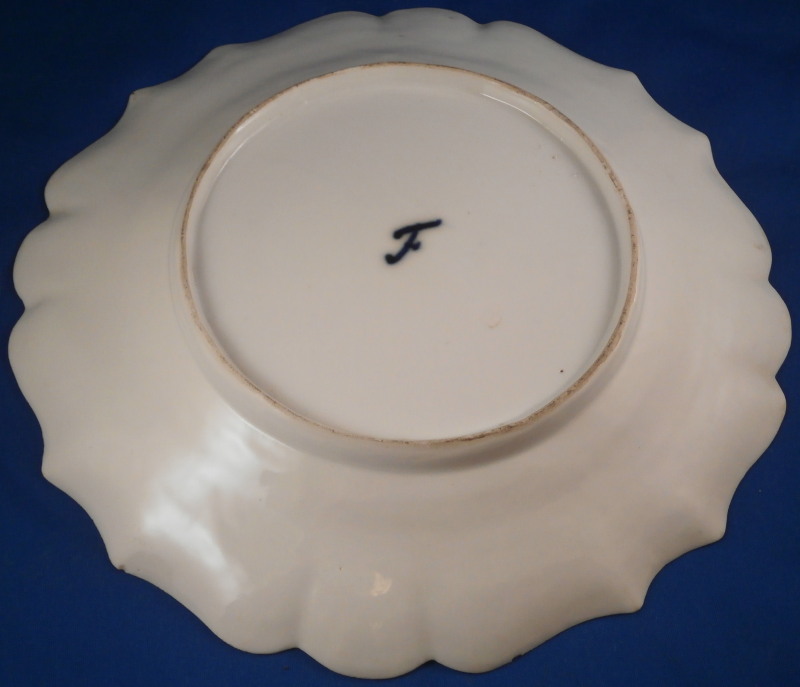This is a very early plate made by Furstenberg during the very beginning of their existence during the 1753 to 1755 period. It is hand painted with a superb floral arrangement in the center with four small flowers filling the rest of the well area, three more flowers along the rim as well as one leaf covering a firing flaw. The rim has a nice shape to it and a basket weave relief design to the edge. The porcelain paste is extremely white and thickly potted reminiscent of very early Meissen in terms of the color. The plate is marked with a very large underglaze blue F mark underneath as well as an incised B.2. It is 1.25 inches tall and 9.625 inches in diameter. The plate is in great condition with some small nibbles along the very edge that are shown in the pics from both sides if applicable. A few firing issues common to early pieces but all in all about as nice as one can hope for after 250 plus years! Please email me for more information or photos.