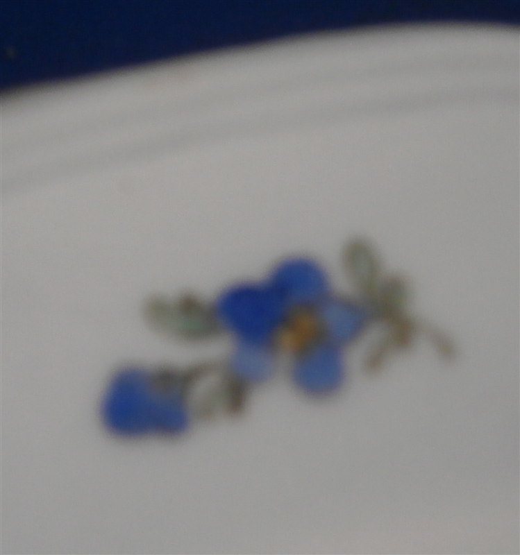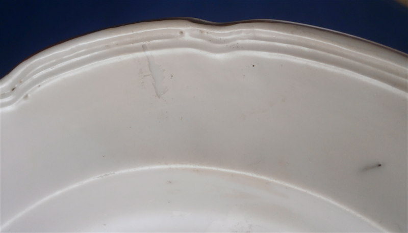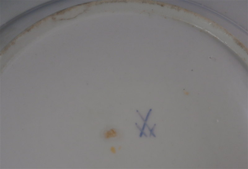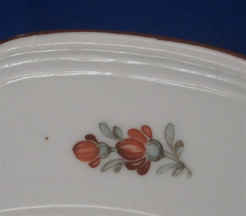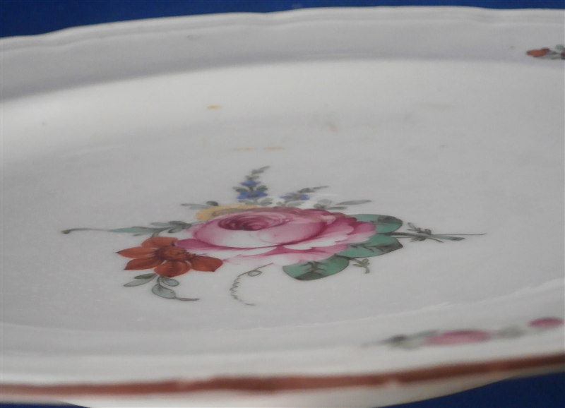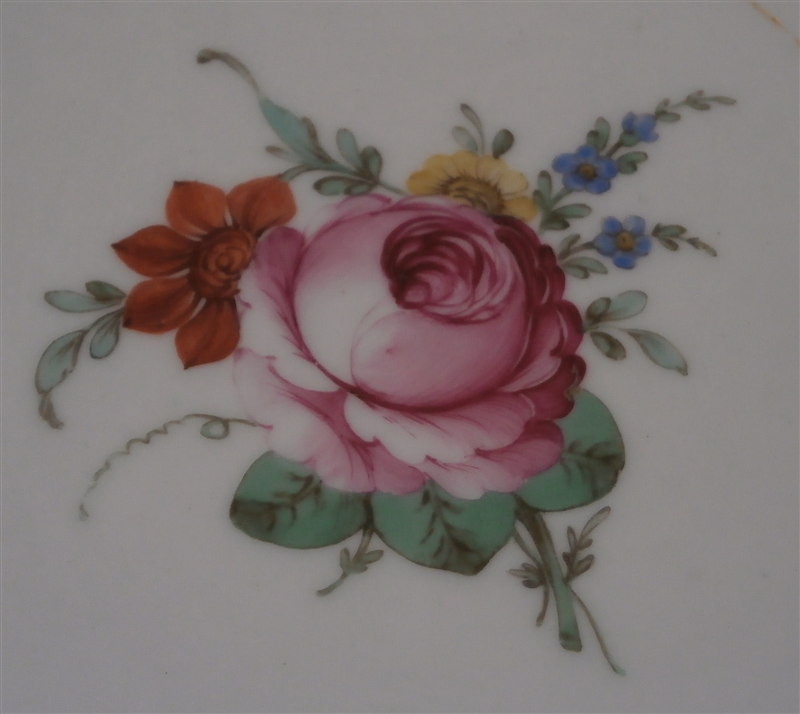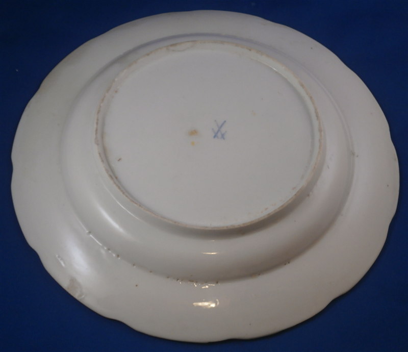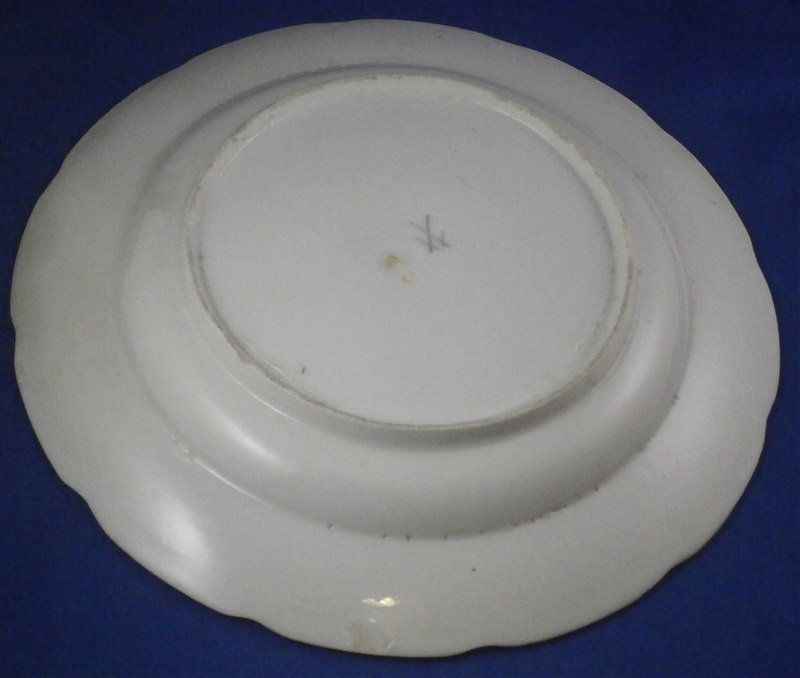 This is a very rare porcelain plate made by the Gardner factory in the 18th century. With a mark I have only read about in books but never actually seen an example in real life. The plate is nicely handpainted with a floral arrangement in the center of a rose with three other flowers in the very typical fashion for Russian pieces of the time as well as three smaller flowers on the rim. The rim has a nice design to it with a brown trim to the edge. A very nice plate that one will not see again soon! Gardner was famous for these decorations and one ven made it into a royal service - the Everyday Service. The plate is 1.125 inches tall and has a diameter of 9.375 inches. It is in good display condition with some stacking marks, manufacturing flaws (black spots, an unglazed spot on the underside rim, etc.) and a restored area to the rim which has overspray which was scratched off in one spot - looks like it was meant to hide a hairline. Could be improved upon but displays fine as is and is certainly a rare example! A small footring chip and an almost chip which never came off the footring. The plate is marked underneath with an underglaze blue crossed swords mark as shown. Please email me for more information or other pictures.