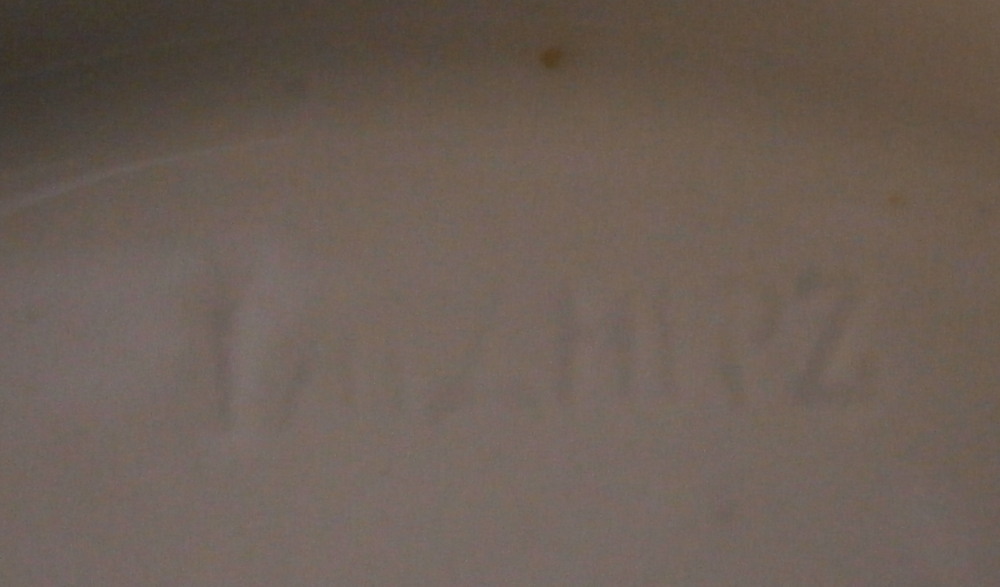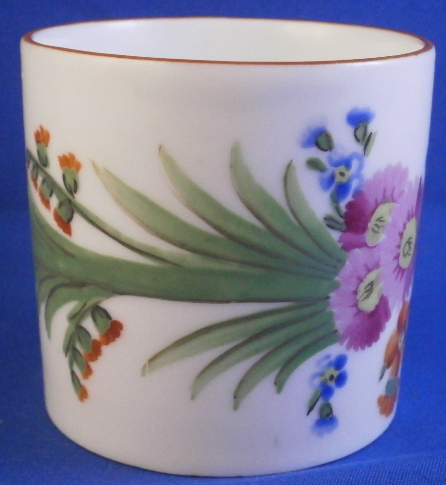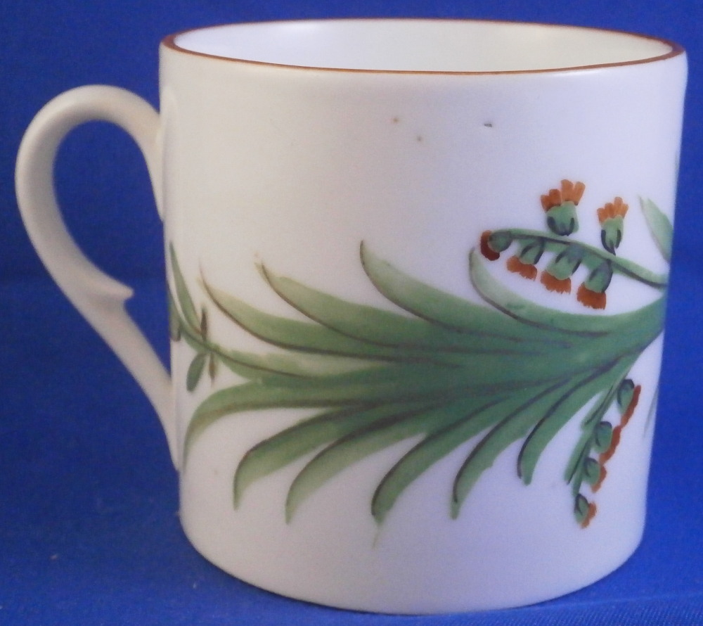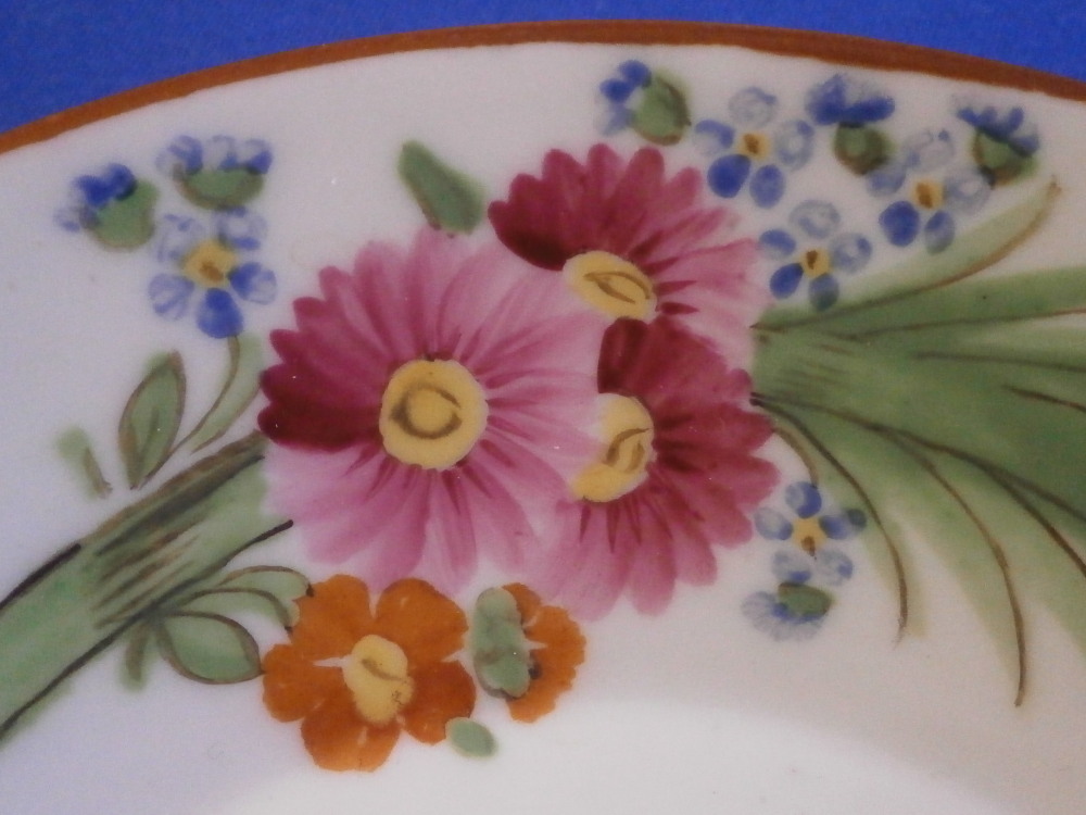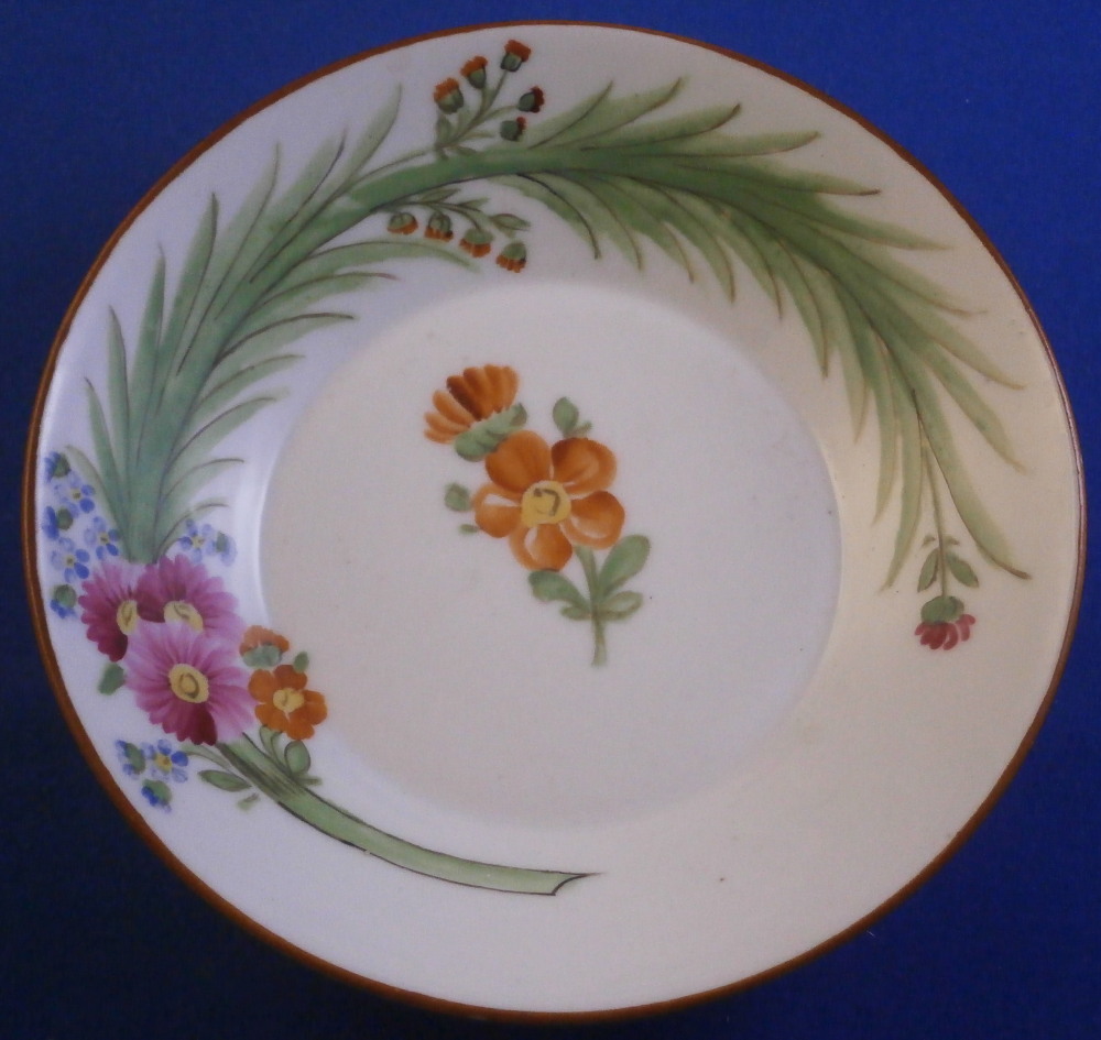 This is a very rare porcelain cup and saucer made by the Gardner factory in Verbilky near Moscow in the 18th century . I have owned some single pieces by them and some plates but never a cup and saucer so I was thrilled to find it. It is nicely hand painted with a large floral and leaf arrangementcovering most of the pieces and a typical rust colored trim to the edges. A really nice cup & saucer set that one will not see again soon. Reminds me very much of the the top German maker's pieces. The cup is 2.5 inches tall with a diameter of 2.5 inches. The saucer is 1.125 inches tall and has a diameter of 5.125 inches. Both pieces are in great condition - as nice as they come! Each is marked underneath with an under glaze blue capital G mark as well as some painted marks, two blue dots on the foot ring of the saucer and some impressed marks including Tapahepz ( Gardner in Cyrillc letters ) as shown. Please email me for more information or other pictures.