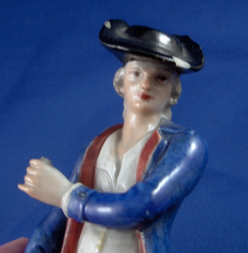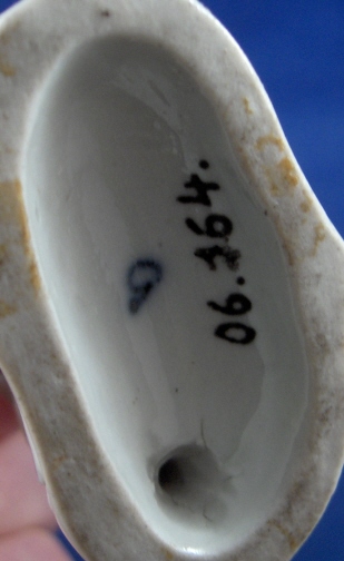 Now to the very interesting end to me owning this piece: I was recently contacted by A Dr. Olaf Thormann from the GRASSI Museum für Angewandte Kunst in Leipzig , Germany. He informed me that this figurine was bought by the museum in 1906 and was stolen at the end of WWII under unexplained circumstances. He provided all the documentation as well as pictures of this figurine and the ID number, etc. So now the figurine is back home in its proper place. Amazing and scary how a piece can end up so far away from home and be found again! A rare moment in porcelain history where we can actually fill in some blanks of where this piece has been and makes you wonder about all the other pieces floating around and their stories!