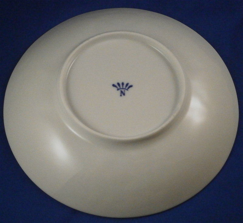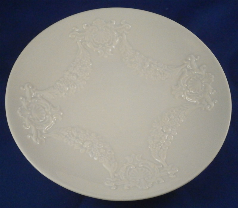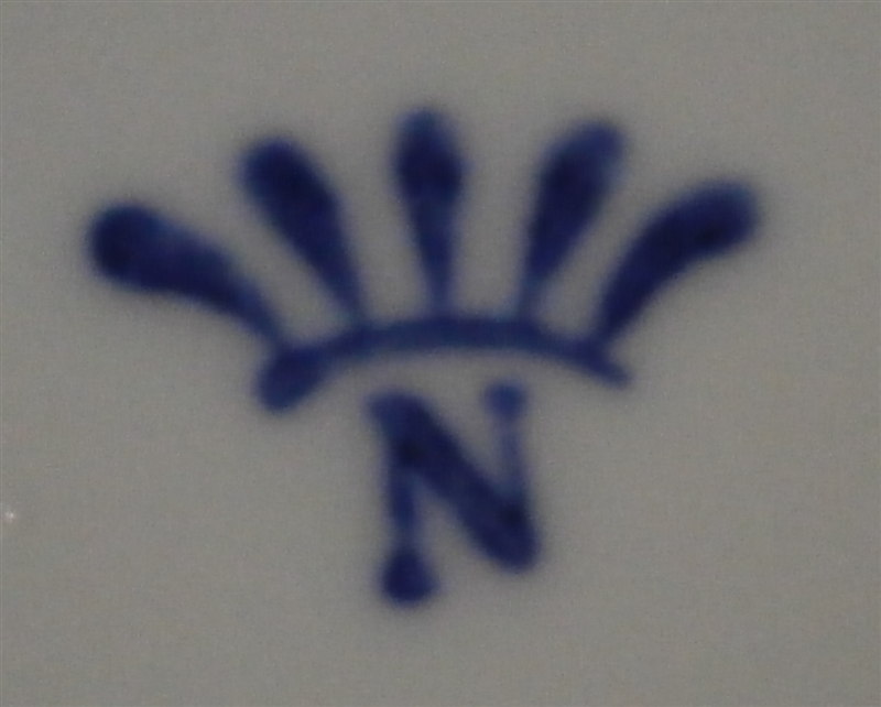 This is a set of four plates made by Ginori in the 20th century. They are decorated with a design of floral garlands connected by a nice scroll and shell motif. Left in the white to show off the nice detail of the porcelain itself. Three plates are in good condition with two having a chip to the inside of the foot rim which does nt take away from them. A fourth plate is included but has a large chip to the edge as shown. All pieces are marked with the crown over N mark as shown with one also having the name Ginori under that. The plates are 1.125 inches tall and 7.125 inches in diameter. Please email me for more information or other pictures.