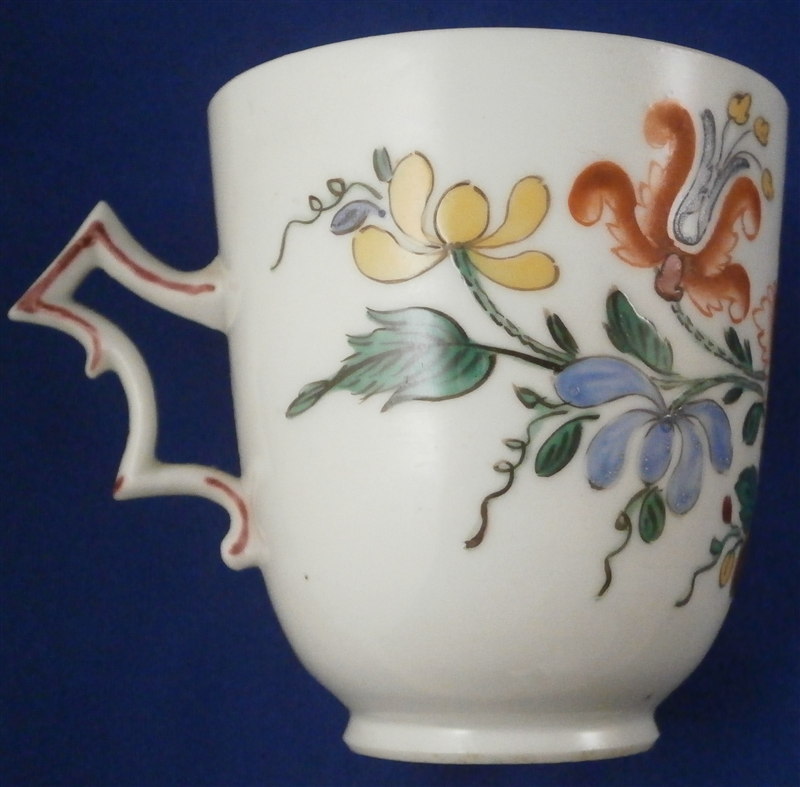 This is a cup & saucer made by Doccia in the 18th century. They are hand painted with a really nice floral design called Ischia that is quite typical for Doccia! The cup handle has a nice shape to it as well as some puce design on it. Both pieces are in superb condition with the saucer having a tiny bit of wear to the center as can be expected but nothing bad. The cup is marked with a puce S with a line below and the saucer has an incised N or 2 underneath. No doubt about it being from Doccia as the flowers and paste are typical and unquestionably made by them. The cup is 2.75 inches tall and 2.5 inches in diameter. The saucer is 1 inch tall and 5.125 inches in diameter. Please email me for more information or other pictures.