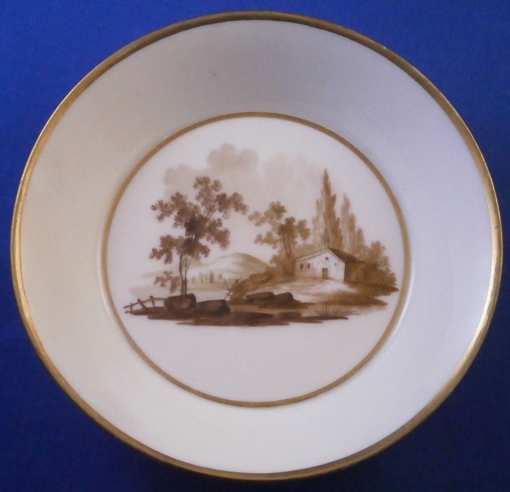 Gotha Sepia Scene Cup w/restored Chip & Saucer