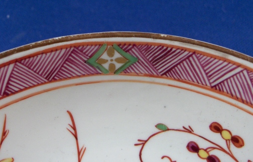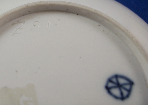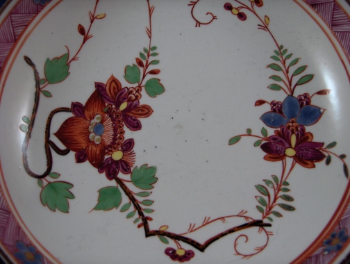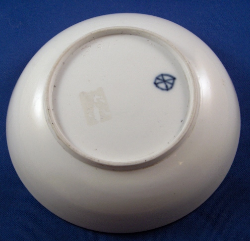 This is a superb saucer made by Höchst in about 1770. You do not find this style of decoration often at all by them but it is certainly very nice :) The inside is painted with th Indian flowers design with a fancy design to the rim and a brown trim to the edge. The saucer is marked with the underglaze blue wheel mark as well as the incised number and letters 1 S Z. It is in very good condition with just the tiniest bit of wear and a little flaking to the blue paint on the flowers - mostly to one on the rim. The saucer is 1.25 inches tall and 5 inches in diameter. Please email me for more information or other pictures.