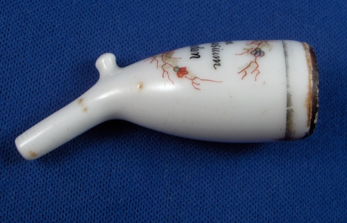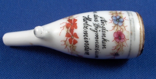 This is one of my new favorite pieces :) A miniature pipe made as a memorial to the good times at the Gymnasium Holzminden. A Gymnasium is a type of top end high school whose pupils where allowed to go onto University to get a higher education. The reason why I love this piece is that I went to this school as a kid before coming to the US :) My dad found the pipe for me recently and it's probably about 100 years old or so. Beginning of the 20th century or maybe even end of the 19th century! The pipe is handpainted with some flowers and the words: Andenken an das Gymnasium Holzminden. It was used quite a bit and still has lots of tabacco residue on the inside. Otherwise in fine condition. The pipe is 2.125 inches tall and the top outside diameter is just under 0.75 inches. Unmarked but that is to be expected. Please email me for more information or photos.