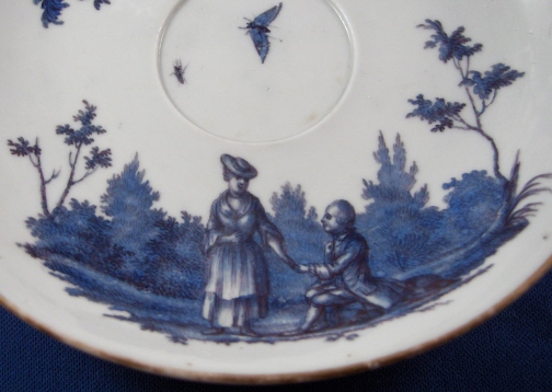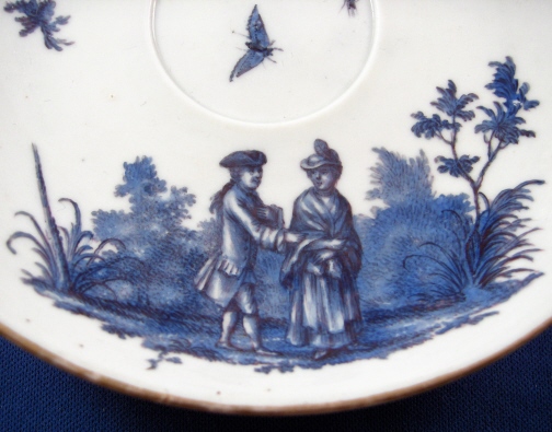 This is a supremely rare saucer made by Kassel of Germany in about 1770. Kassel was probably the shortest maker in existence back then. They started as a faience factory around 1680 and made porcelain from 1766-1788. It is said they did not reach the artistic level of the other factories but they sure made some nice things. The arcanist Nicholaus Paul came from Fulda as did the repairer Franz Joachim Hess. Their chief modeller was J.G. Pahland and the repairer Friedrich Kuenckler both came from Fuerstenberg. It is said that all pieces of Kassel porcelain (about 200 known in the world) are accounted for but this is the second new piece I found which was certainly made by them so there are likely a few more out there! The saucer is nicely decorated with two handpainted scenes that are larger than usual on saucers but this is typical for Kassel. There are also two bugs in the well. Also the color is very different from any other maker and also typical for them. The quality of the paste is not so hot with lots of inclusions. It is marked underneath with the underglaze blue lion mark which by itself could be Frankenthal but in combination with the incised marks and the other signs is obviously made by Kassel. It also has an incised 38 which is the number for the porcelain compound I believe. The saucer is in superb condition with just some manufacturing flaws and some wear to the gold trim on the edge. Just a nice piece from an extemely rare maker! A once in a lifetime opportunity to learn and look at it. The saucer is 1.125 inches tall and 5.5 inches in diameter. Please email me for more information or photos.