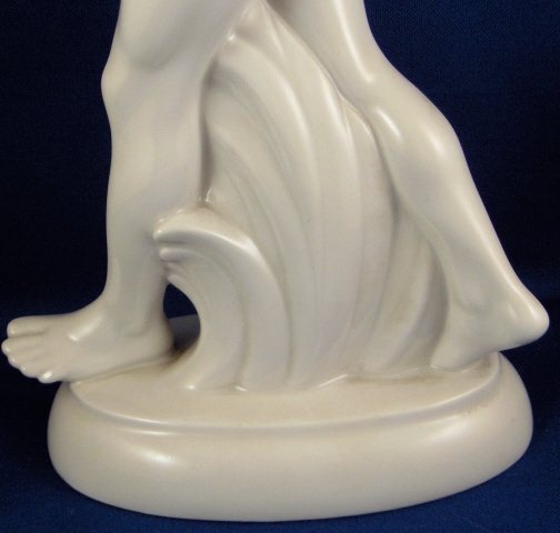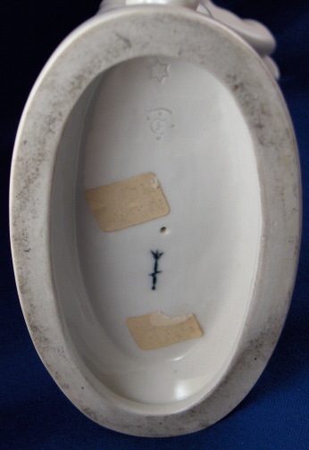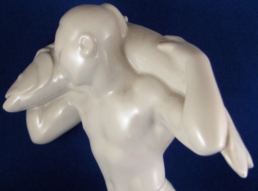 This is a very neat figurine made by KPM in the mid 20th century. It is of a Japanese man carrying a fish over his shoulders - a figurine that was part of the crown prince's wedding procession designed by Adolf Amberg and extremely popular among collectors even today! One can see why - a well modeled figurine that is super elegant and left in the white brings this out even more I think! The figurine is in perfect condition. He is 10.25 inches tall, 3 inches wide and 5 inches deep. The figure is marked underneath with the blue scepter mark as well as the usual impressed marks one finds on KPM pieces. There is also a faint signature by his back foot of the designer AMBERG in impressed letters. It is a bit faint but it is there. Please email me for more information or other pictures.