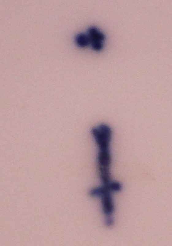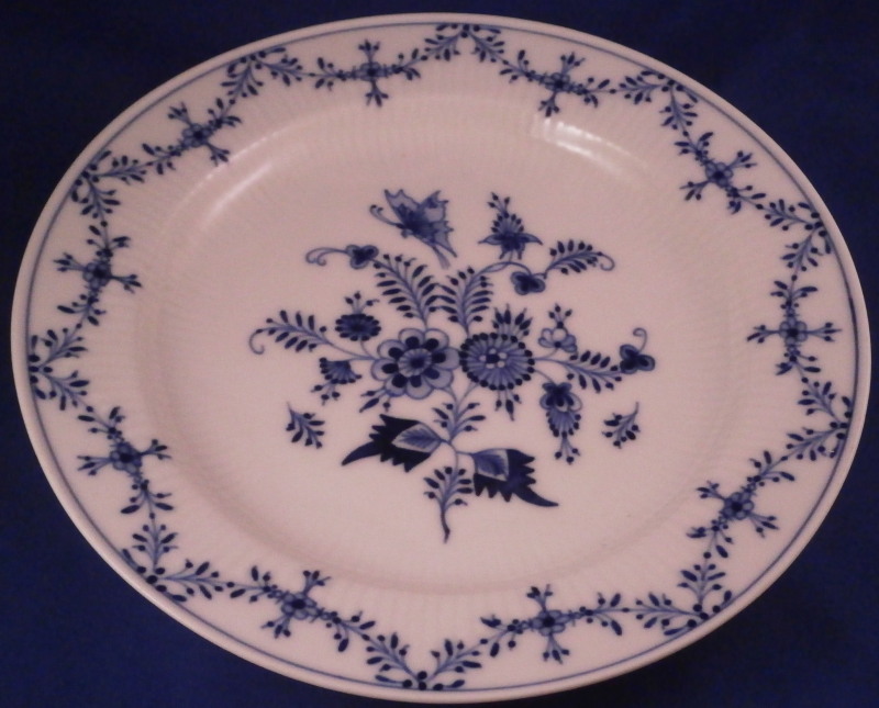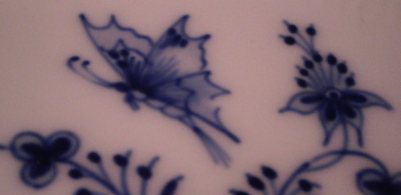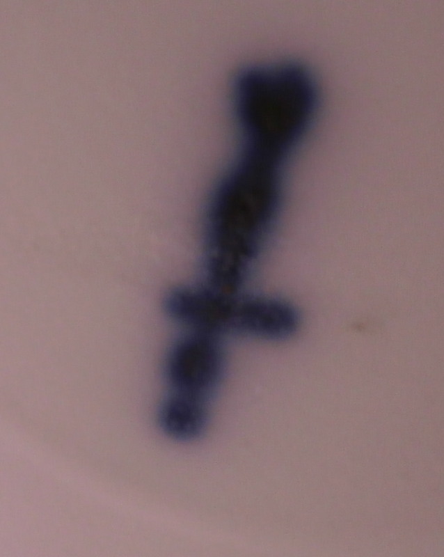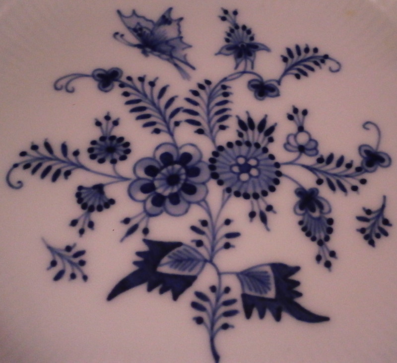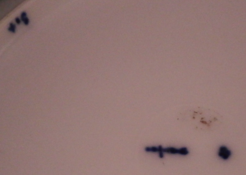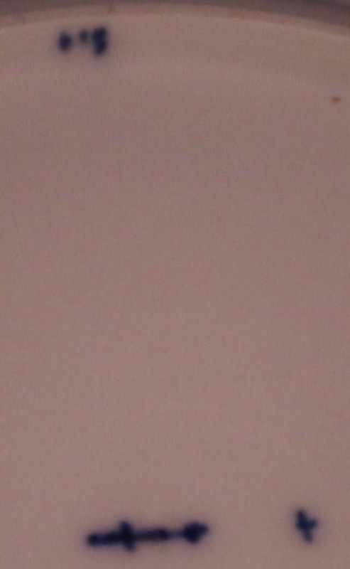 This is a nice set of four plates made by KPM in the 19th century. Having a tough time actually pinpointing a more exact date. I do believe they are soup plates but not very deep. Can be used for dinner plates as well I think. Each plate is decorated in under glaze blue (hence no red orb mark yet) with the famous strawflower pattern with a nice ribbed design to the paste in between the well and the rim. The butterfly is my favorite part of the design! Each plate is in great condition with some very minor use marks. They display perfectly! The plates are 1.25 inches tall and 9.25 inches in diameter. Each of the pieces is marked underneath with the under glaze blue scepter mark as shown with a plus sign above them, three of the plates also have a blue painter's mark on the foot ring and they have some impressed marks normal to this period but no date marks yet so definitely not 20th century! Each plate has a ground cut mark over the scepter denoting them being second choice likely because they are a bit out of shape from the firing process. Please email me for more information or other pictures.