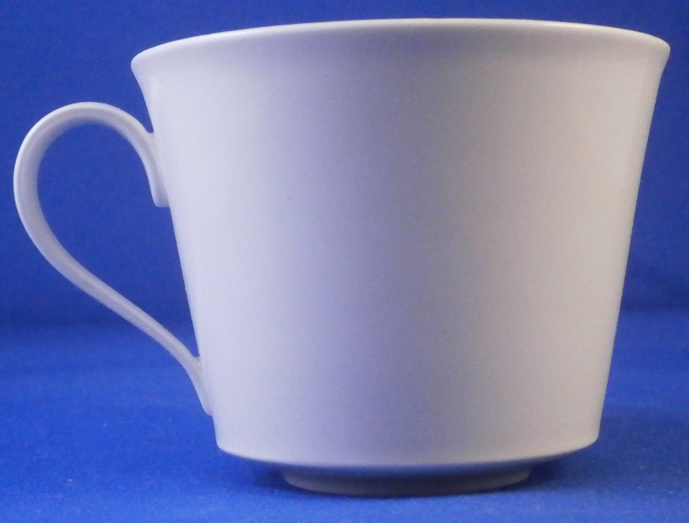 This is a demitasse / mocha coffee / espresso sized cup and saucer from the Arkadia / Arcadia series made by KPM in the mid 20th century right after WWII. A really nice shape - sleek and modern with an unglazed medallion of a lady's head wit the letter H by it as shown. The rest of the cup and saucer are glazed. A really nice looking set! Both pieces are in perfect condition and are marked underneath with the under glaze blue scepter with the S under it for the Selb location as well as the green Made in Germany US Zone and some impressed marks under the saucer typical for this period as shown. The US Zone part was only used for a short time after WWII. The cup is 2 inches tall and has a diameter of just under 2.625 inches. The saucer is 0.625 inches tall with a diameter of 5.25 inches. I have quite a few of these set so if you need more than one just let me know and we'll figure it out from there! Please email me for more information or other pictures.