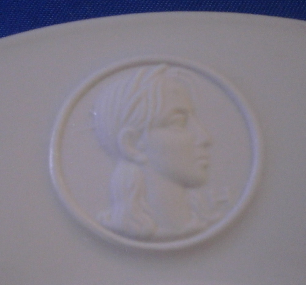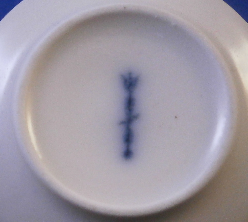 This is a demitasse / mocha coffee / espresso sized cup and saucer from the Arkadia / Arcadia series made by KPM in the later 20th century. A really nice shape - sleek and modern with an unglazed medallion of a lady's head wit the letter H by it as shown. The rest of the cup and saucer are glazed. A really nice looking set! Both pieces are in perfect condition and are marked underneath with the under glaze blue scepter mark - no impressed marks. The cup is 2 inches tall and has a diameter of just over 2.5 inches. The saucer is 0.625 inches tall with a diameter of 5.125 inches. I have quite a few of these set so if you need more than one just let me know and we'll figure it out from there! Please email me for more information or other pictures.