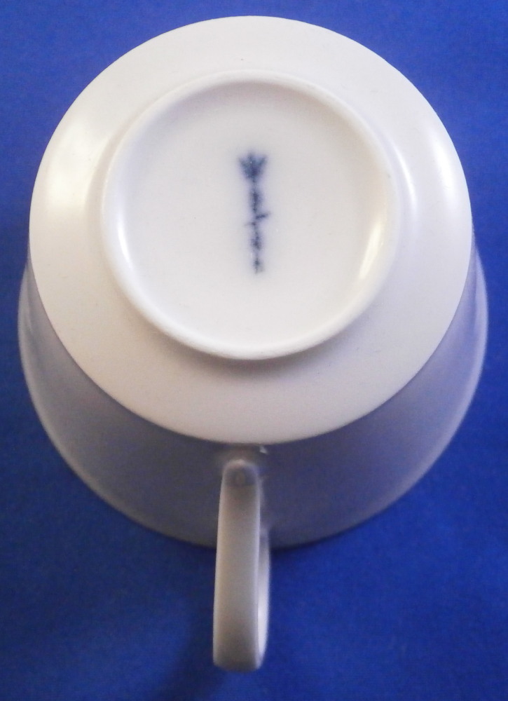 This is a demitasse / mocha coffee / espresso sized cup and saucer from the Arkadia / Arcadia series made by KPM in the later 20th century. A really nice shape - sleek and modern with an unglazed medallion of a lady's head with the letter H by it as shown. The rest of the cup and saucer are glazed. A really nice looking set! Both pieces are in perfect condition. The cup is marked underneath with the under glaze blue scepter mark - no impressed marks while the saucer has the under glaze blue scepter with the letter S below for Selb as well as some impressed marks as shown. The cup is 2 inches tall and has a diameter of just over 2.5 inches. The saucer is 0.625 inches tall with a diameter of 5.25 inches. I have quite a few of these set so if you need more than one just let me know and we'll figure it out from there! Please email me for more information or other pictures.