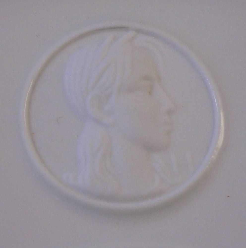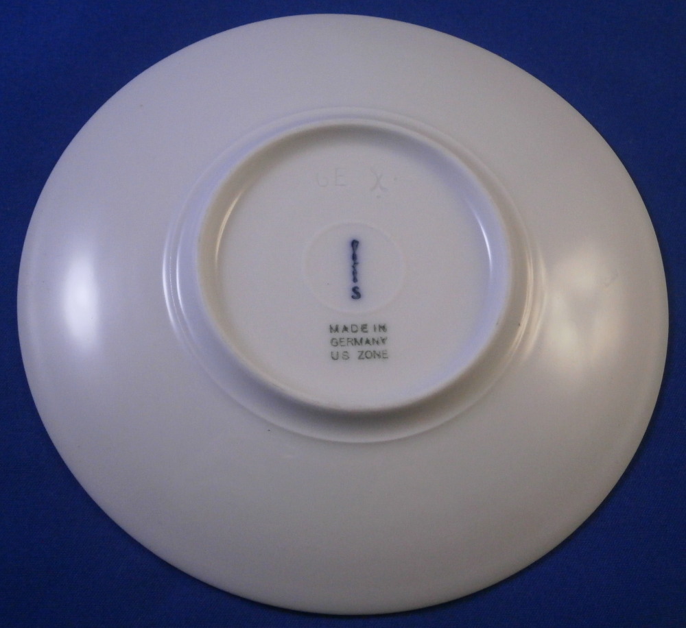 This is a demitasse / mocha coffee / espresso sized saucer from the Arkadia / Arcadia series made by KPM in the later 20th century. A really nice shape - sleek and modern with an unglazed medallion of a lady's head with the letter H by it as shown. The rest of the saucer is glazed. The piece is in perfect condition. The saucer is marked underneath with the under glaze blue scepter mark with the letter S below for Selb as well as some impressed marks as shown. Also Made in Germany US Zone in green as shown. It is 0.625 inches tall with a diameter of 5.125 inches. I have a few of these pieces so if you need more than one just let me know and we'll figure it out from there! Please email me for more information or other pictures.