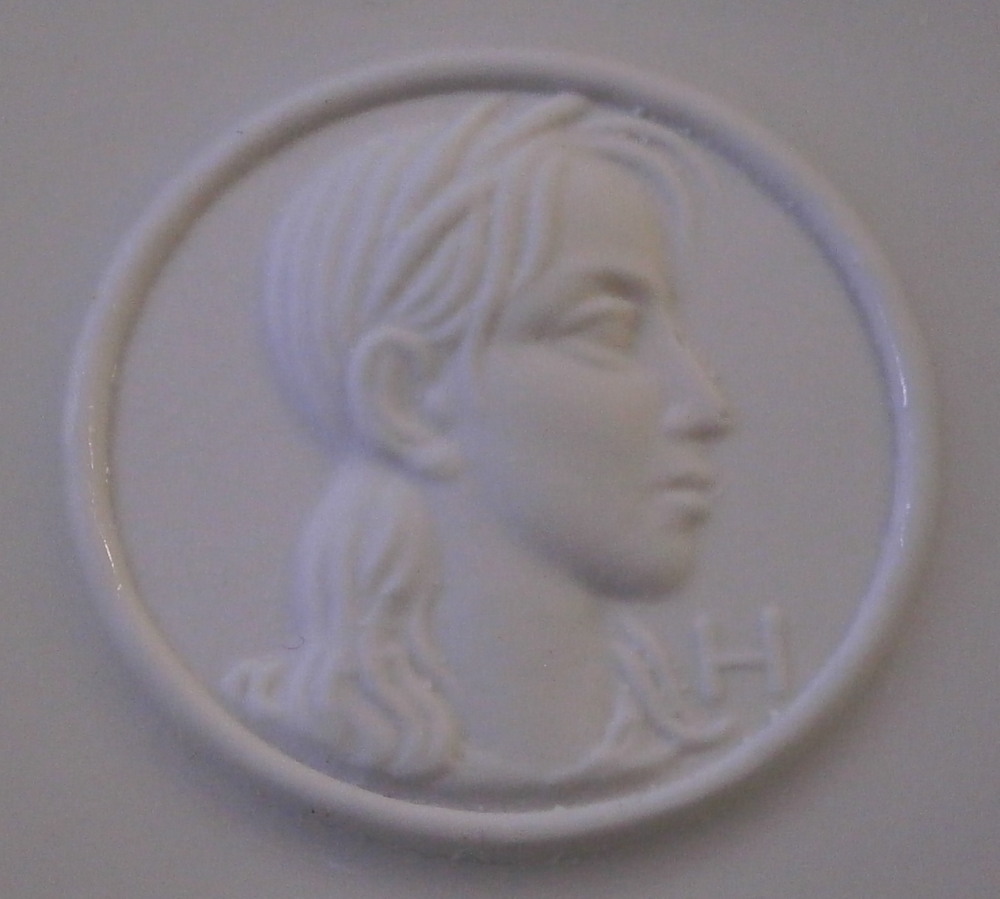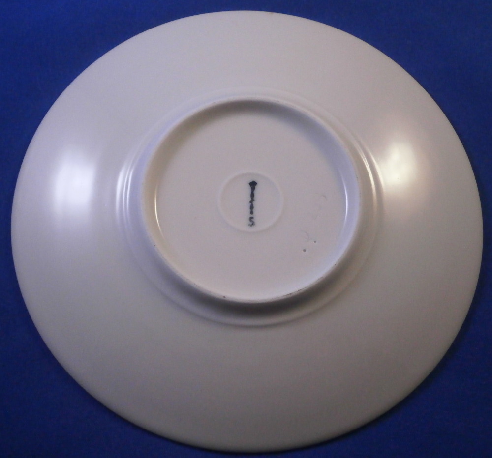 This is a demitasse / mocha coffee / espresso sized saucer from the Arkadia / Arcadia series made by KPM in the later 20th century. A really nice shape - sleek and modern with an unglazed medallion of a lady's head with the letter H by it as shown. The rest of the saucer is glazed. The piece is in perfect condition. The saucer is marked underneath with the under glaze blue scepter mark with the letter S below for Selb as well as some impressed marks as shown. It is 0.625 inches tall with a diameter of 5.25 inches. I have a few of these pieces so if you need more than one just let me know and we'll figure it out from there! Please email me for more information or other pictures.
