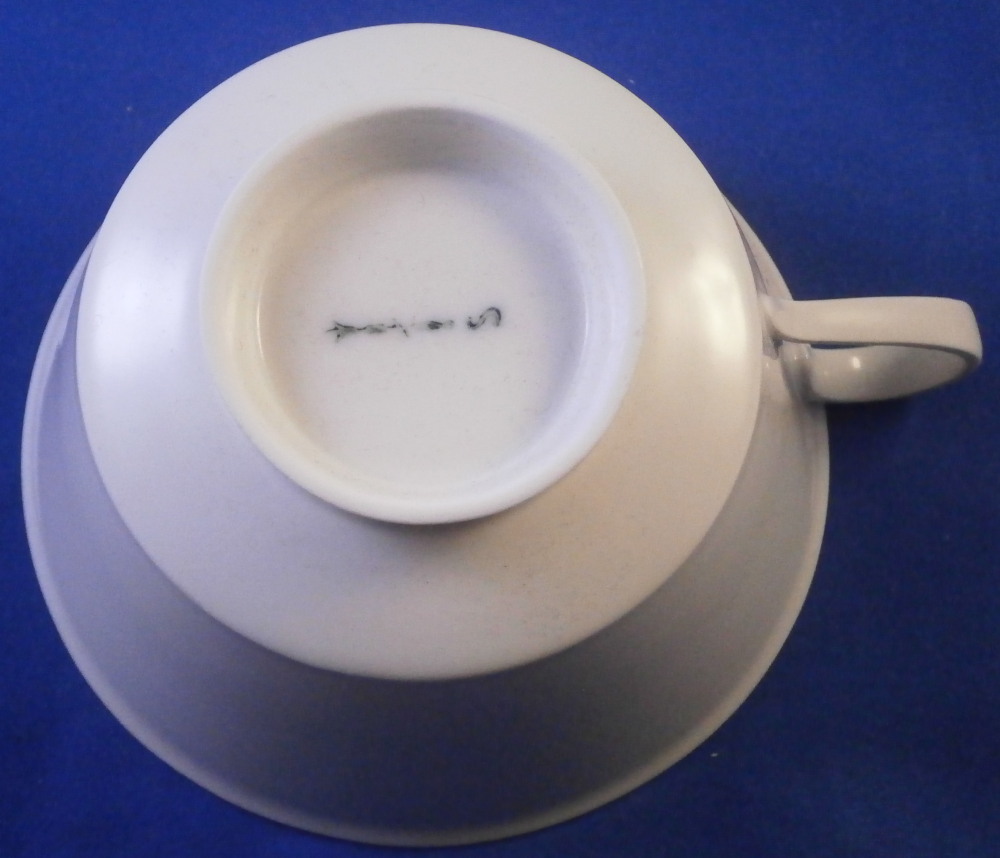 This is a tea cup from the Arkadia / Arcadia series made by KPM in the mid 20th century. A really nice shape - sleek and modern. The piece is in perfect condition. It is marked underneath with the under glaze blue scepter mark with the letter S for the Selb location under that as shown. These were from around 1950 right around the end of the war. The cup is 2.125 inches tall with a diameter of 3.875 inches. The teacup is in perfect condition. I have a few of these pieces so if you need more than one just let me know and we'll figure it out from there! Please email me for more information or other pictures.