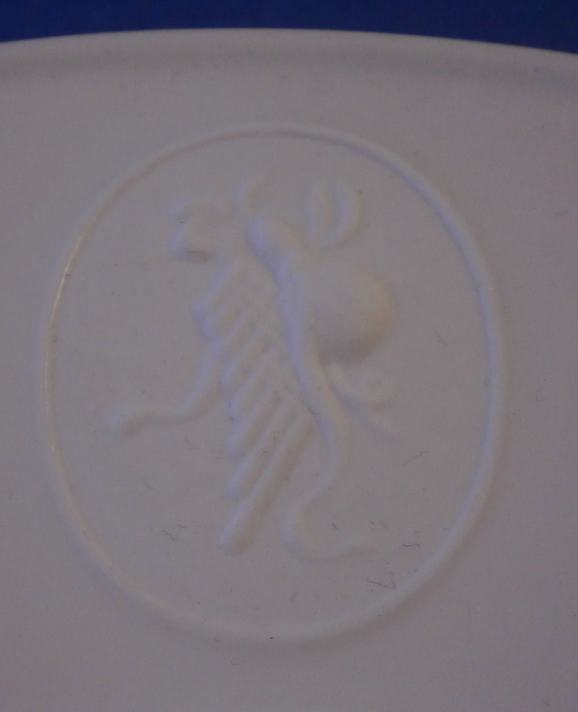 This is a tea cup and saucer set from the Arkadia / Arcadia series made by KPM in the 20th century. A really nice shape - sleek and modern with an unglazed medallion of a nice design including a pan flute and some other item on the saucer as shown. The rest of the cup and saucer are glazed. A really nice looking set! Both pieces are in perfect condition. Both pieces are marked underneath with the under glaze blue scepter. The cup alos has the letter S under the scepter and the saucer has the usual impressed marks as shown. The cup is 2.125 inches tall and has a diameter of just over 3.875 inches. The saucer is 0.625 inches tall with a diameter of 6.625 inches. I have quite a few of these set so if you need more than one just let me know and we'll figure it out from there! Please email me for more information or other pictures.
