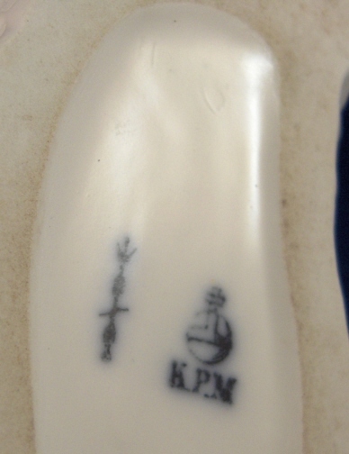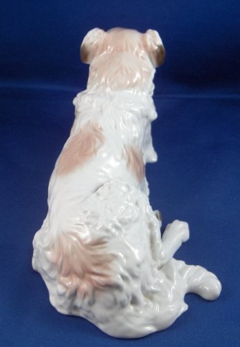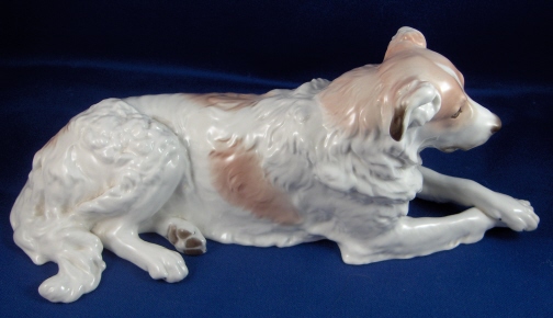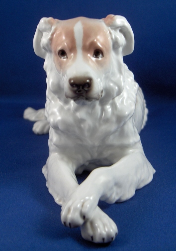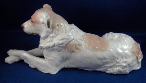 This is a dog made by KPM in the early 20th century in the Art Nouveau or Jugendstil style. Not sure what breed he is maybe a St. Bernard. The dog is very elegantly modeled and painted under the glaze. It is in perfect condition and is 3.5 inches tall, 4 inches wide and 9.25 inches long. The figur is marked underneath with the underglaze blue scepter as well as the blue orb mark for underglaze painting and some impressed marks I can't quite make out. Please email me for more information or other pictures.