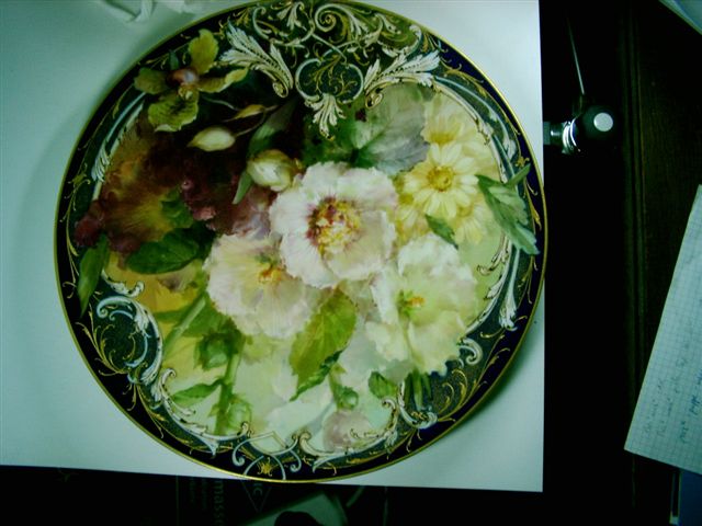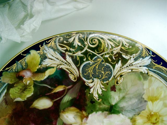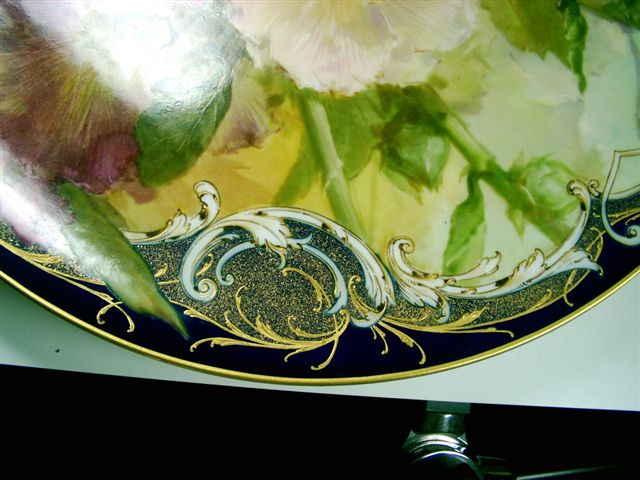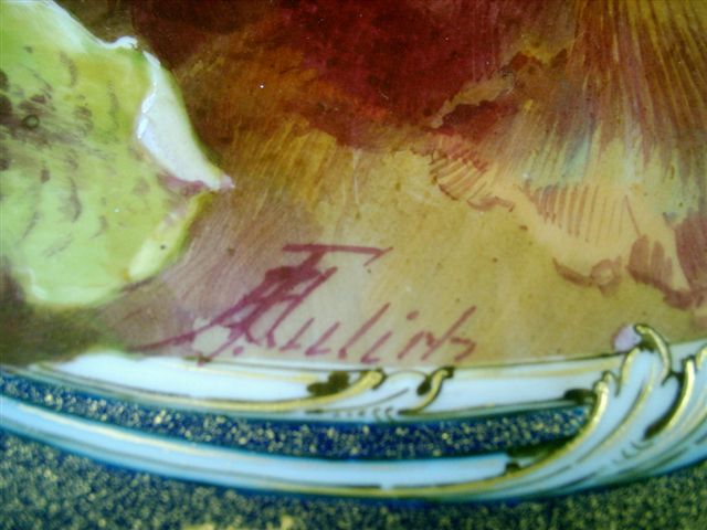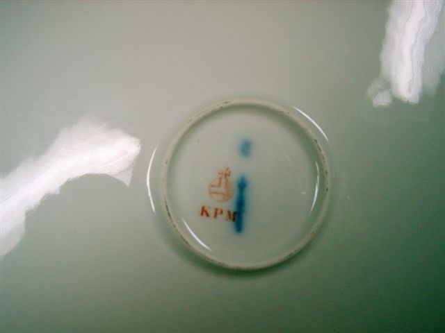 This is a rare plate made by KPM around 1910. It is handpainted in the Weichmalerei style but not just in the center but over the whole plate. It is more of a charger actually - being 12 inches in diameter. The plate is signed by one of the most famous Weichmalerei painters - Aullich. The plate is in perfect condition and marked underneath with the underglaze blue scepter and red orb mark as well as various other marks. Please email me for more information or other pictures.