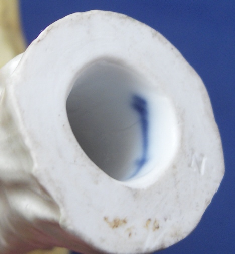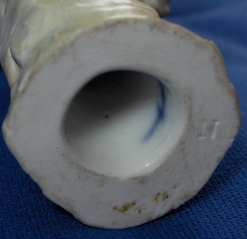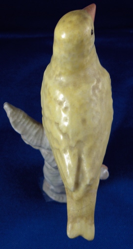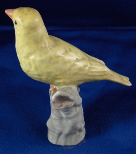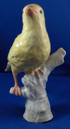 This is a bird figurine made by KPM around 1780. It is of a yellow Canary sitting on top of a branched tree stump. The detail of it is superb and it is rare to find them from the original period. Nice modeling and painted very well. The figurine is in good condition but not without faults as one would come to expect of these early pieces. His tail has been mended as was a shallow chip to the bottom base rim. Neither takes away from the piece when on display! The bird is 4.125 inches tall, 3.275 inches long and 2 inches wide. It is marked underneath with one of the 18th century underglaze blue scepter marks - looks like the fairly long and skinny one as well as an impressed letter N (not the more modern date code N!). The back of the base is incised Kan Vogl for Kanarien Vogel which is the German name of this little guy. Please email me for more information or other pictures.