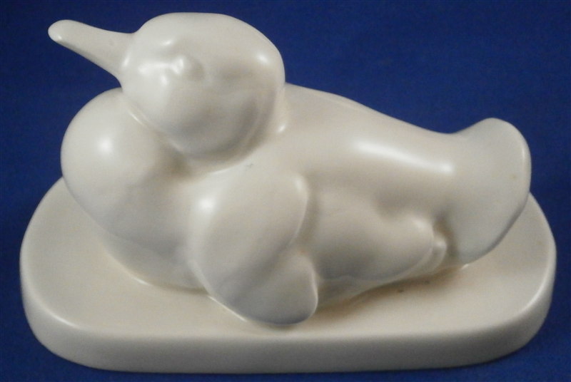 This is a cute figurine of a duckling made by KPM in the 20th century. Not one I have seen before so there can't be a ton out there. A cute model with the duck sitting on a simple base and left in the white to let the porcelain speak for itself. A really cute and fun figure . The piece is in perfect condition. It is 2.25 inches tall, 2.25 inches wide and 4.375 inches long. The figure is marked underneath with the underglaze blue scepter as shown. Please email me for more information or other pictures.
