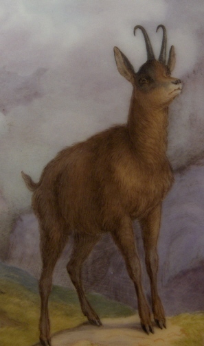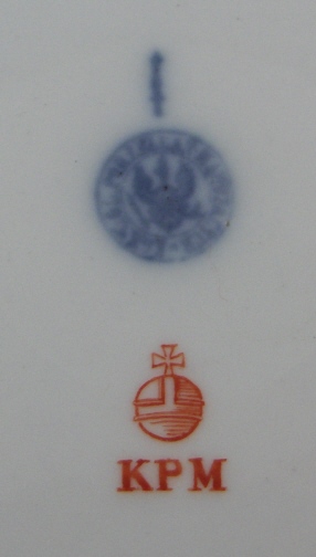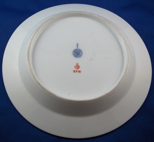 This is a superb plate made by KPM around 1860. I have rarely seen such a well painted plate but we all know they painted some superb plaques and the quality fo the large scene in the center is along those lines. The entire well of the plate has a scene of a chamois on it in its natural habitat high in the mountains. There are clouds above and snowy mountains in the background with the chamois standing in the foregrounf on some rocks with a shrub to the bottom left. Nice gold ring around the well and on the rim. It is in super condition with a tiny bit of wear to the gold. The plate is marked underneath with the underglaze blue scepter with the pfennig (penny) mark underneath, the red orb as well as impressed number 1 and an X. The plate is 1.125 inches tall and 8.25 inches in diameter. Please email me for more information or other pictures.