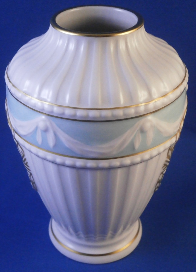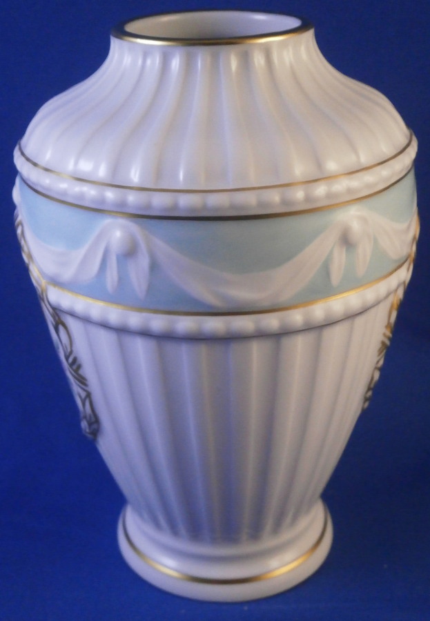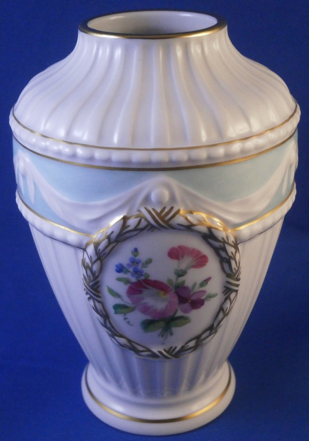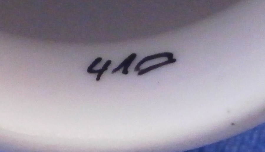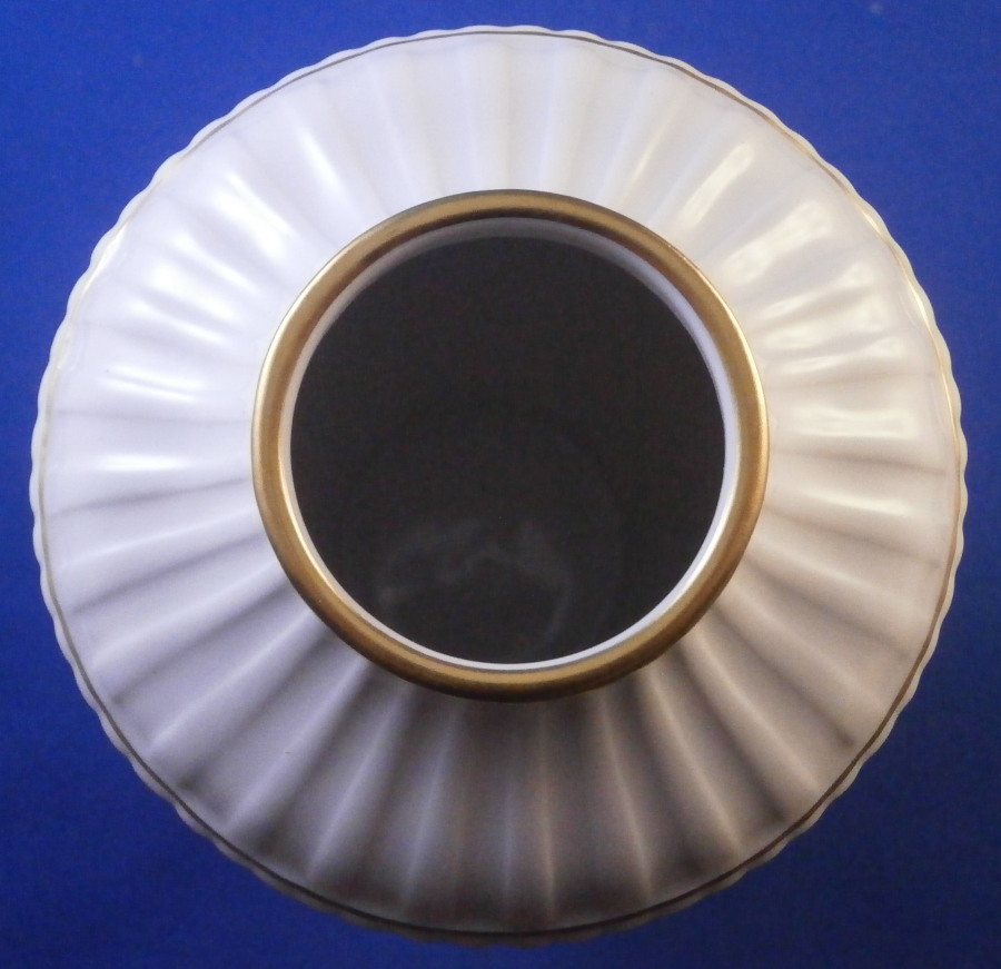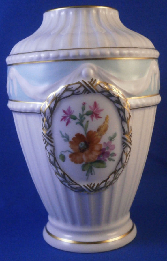 This is a te acaddy / jar in the Kurland pattern , Decor 41 made by KPM in the 20th century. It is one of my favorite patterns and looks very stunning when in use or on display. Luckily I just bought a whole load of different pieces from this service! Decor 41 is also one of the most expensive versions of Kurland with the greenish / turquoise & gold trim with the flowers. I believe this is one of the best designs ever for a service. The caddy is decorated with a hand painted large floral arrangement to the front and back surrounded by a relief wreath highlighted with gilding and off course the raised white swags on turquoise ground and gold trim. Nice finial to the lid. The piece is in perfect condition and marked underneath with the under glaze blue scepter as well as the red orb and some other marks from this period as shown. The jar with its lid in place is 6.5 inches tal and 3.25 inches in diameter. Please email me for more information or other pictures.