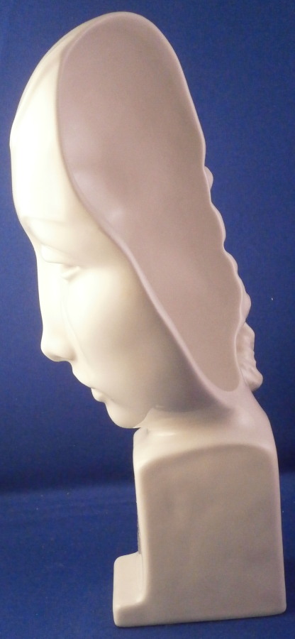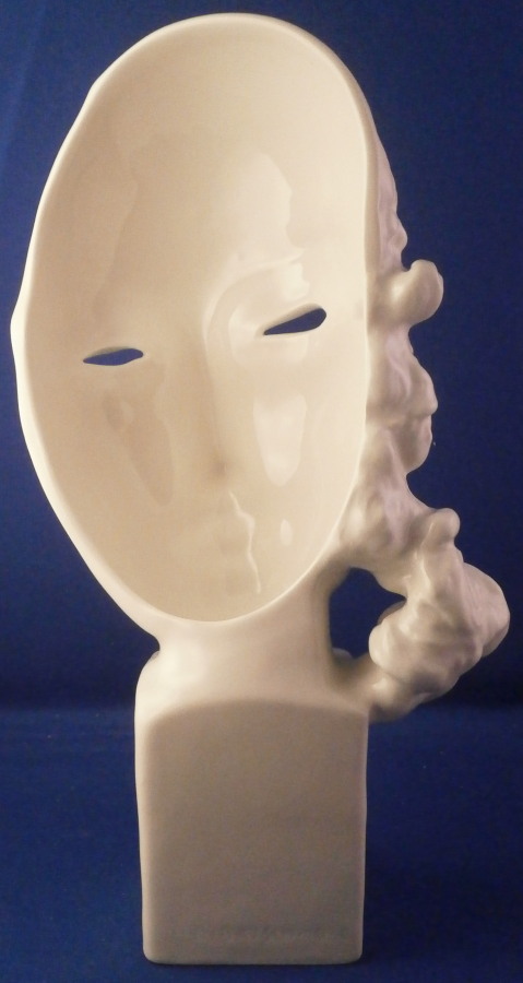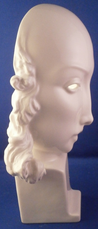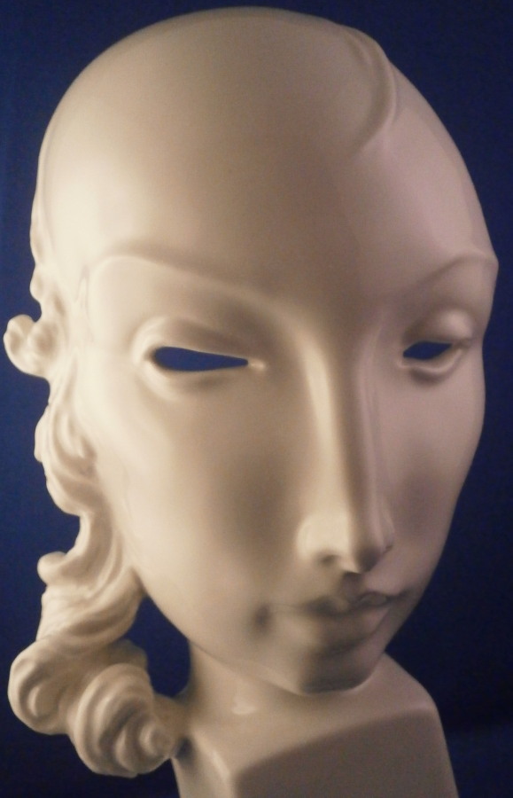 This is a superb mask made by KPM in the mid 20th century. It was first designed in 1930 by Hermann Hubatsch who is quite the famous guy in porcelain circles! The piece is of a lady's face designed as a mask with a very modern feel to it standing on a simple base that is signed in the back Hubatsch 1930. The piece is in perfect condition! The piece looks stunning on display! It is marked underneath with the under glaze blue scepter mark as well as the usual impressed marks of this period as shown. The piece is 9.25 inches tall and 4.75 inches wide with a depth of about 3.375 inches. Please email me for more information or other pictures.