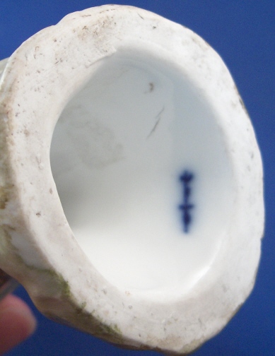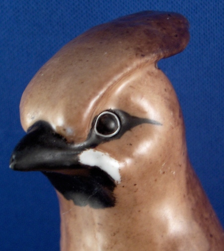 This is a superb bird figurine either from the later 18th but I think more likely early 19th century and made by KPM in Berlin. KPM used no painters mark like the red orb yet during this period thus you only have the blue scepter and impressed marks most of the time. I think this is a Bohemian Waxwing thanks to some helps to a fellow collector. A very well modeled and hand painted piece. Really a very nice figurine! The piece is in super condition with just a little wear and a manufacturing flaw on top of his beak by the tip (not later damage!). The figurine is 7.725 inches tall, 2.375 inches wide and 3.75 inches deep. It is marked with the underglaze blue scepter mark underneath as shown. As is the norm on their early birds the name is incised in the back base but obscured by the glaze and paint but after searching a while online for a matching bird I do think it says Seidenschwanz (Waxwing)and that does seem to fit. Please email me for more information or other pictures.