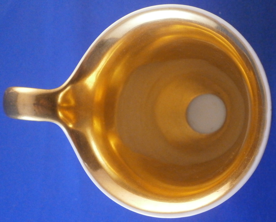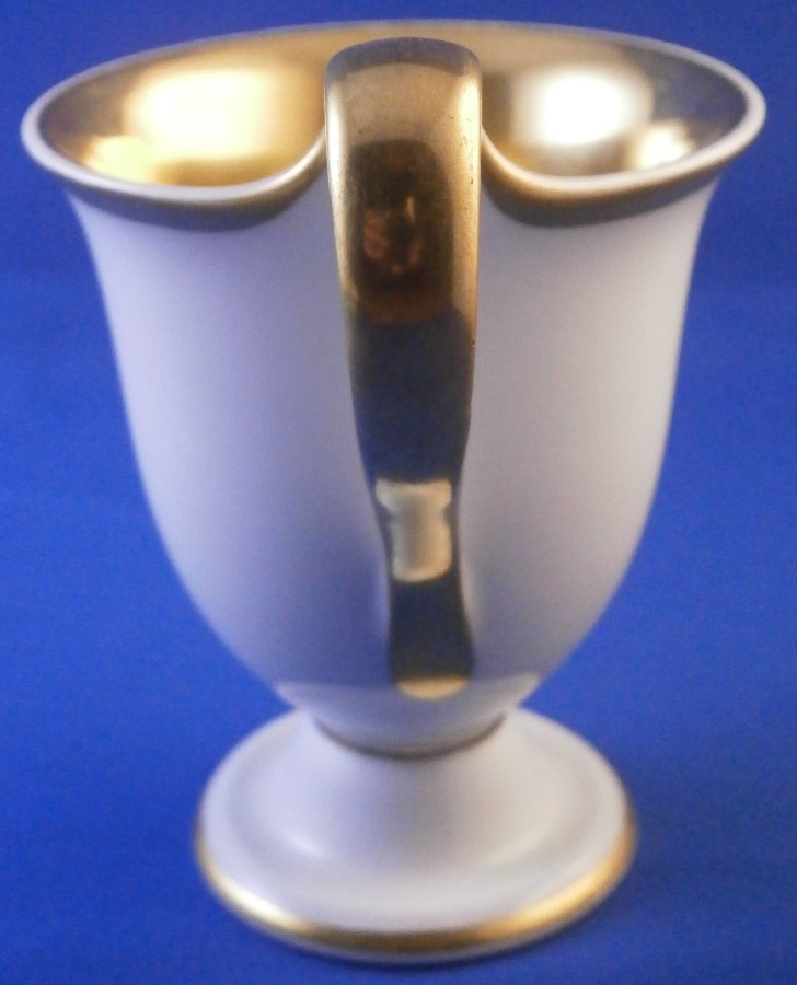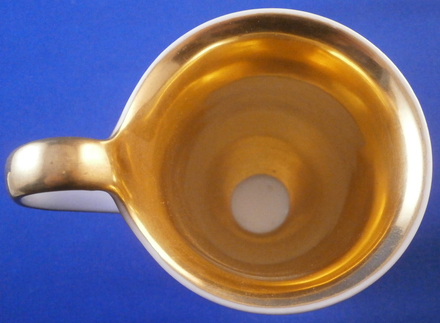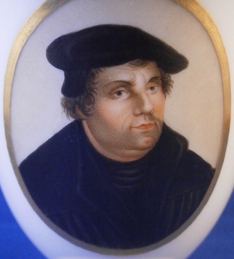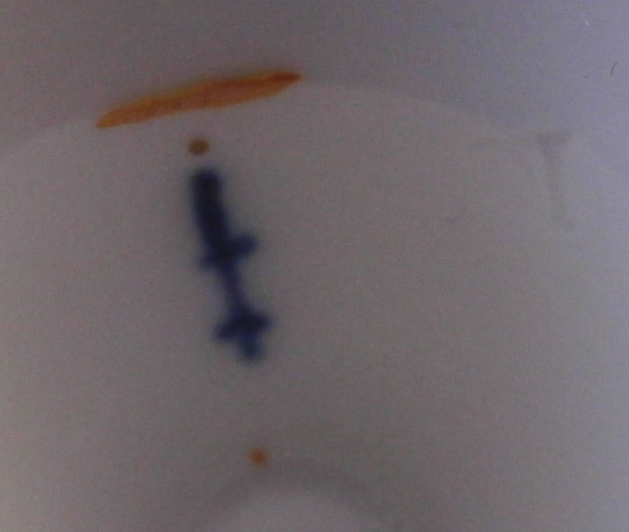This is a cup and saucer made by KPM in the early 19th century during the Biedermeier period around 1815-20. It was made before they used their red orb mark thus you only have the blue scepter and impressed marks / painter's marks most of the time. The painter's marks here are the orange line and dots. The style of the cup is really very sleek and typical of this period but the best part is the portrait to the front of the cup of Dr. Martin Luther. It is very well painted. Some nicely placed gold trim and a full gilding (except the very bottom) of the inside make this a very elegant set. The saucer simply has two gold lines and the his name in black in the center. Somewhere in the distant past I am related to this guy which might explain the stubbornness running in my family :) My brother is really into genealogy and he has found some really interesting things through it. I don't have the time or patience for it but it's really neat to see his work on it. Both pieces are in great condition with just the most minor of wear to the gilding. As nice as you will find! The cup is 4.125 inches tall including the handle and just under 3 inches in diameter. The saucer is 1 inch tall and just under 5.5 inches in diameter. Both pieces are marked underneath with the under glaze blue scepter mark as well as the painter's marks and impressed marks as shown. Please email me for more information or other pictures.