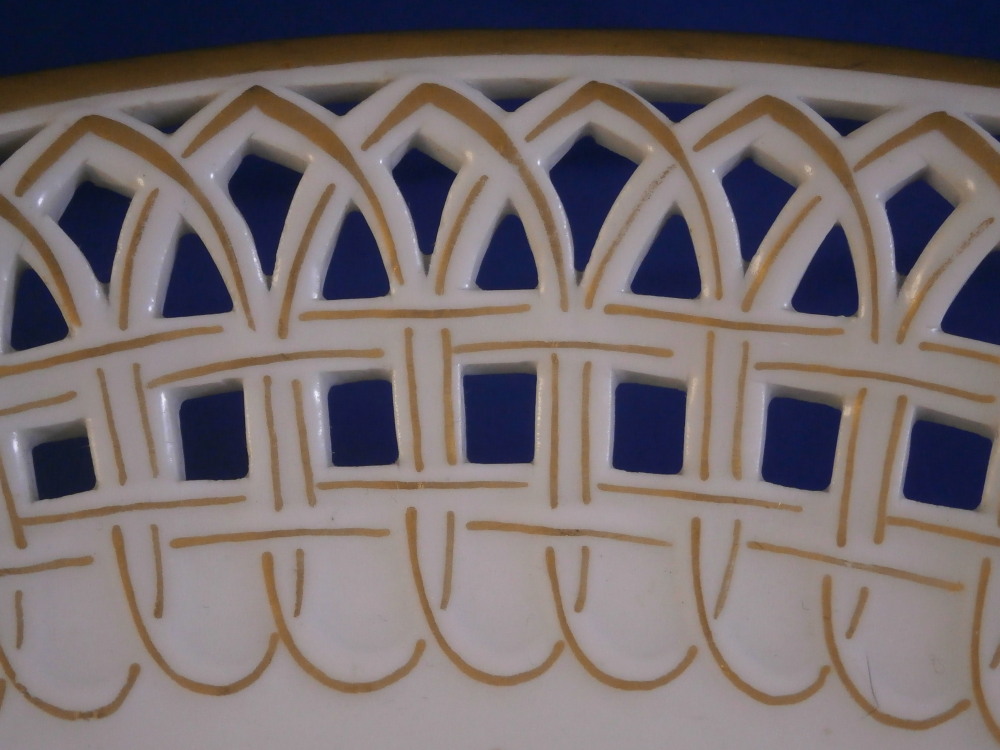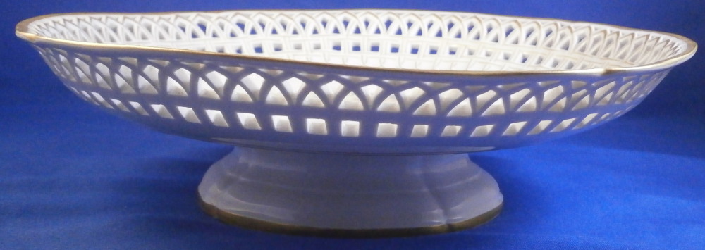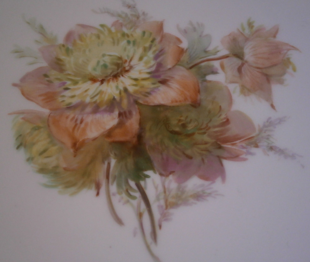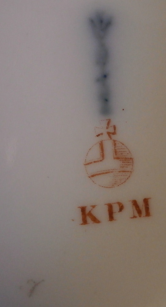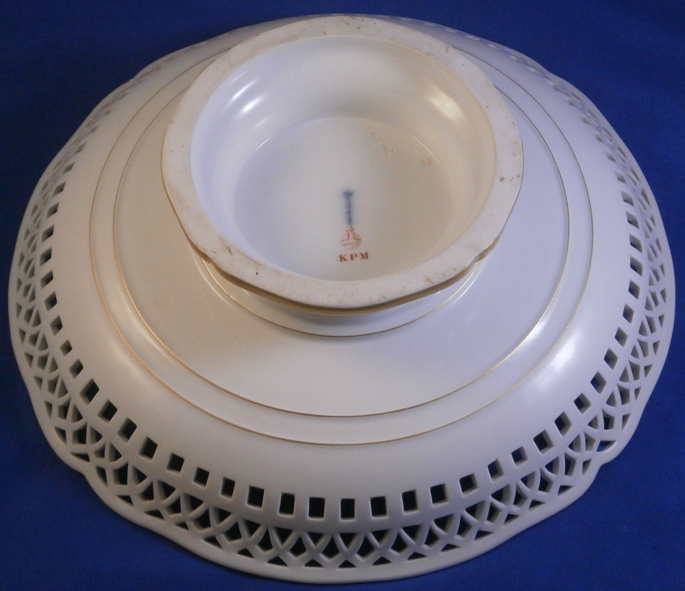 This is a superb pedestal bowl / compote / dish / tazza made by KPM in the early 20th century. It is hand painted with a superb flower design in the center of some anemones (I think) in the amazing Weichmalerei colors of the period! The rim has a nice reticulated design to it with gilding in between. It a really nice looking dish! Deep in shape like a bowl rather than just a plate. The Weichmalerei colors KPM used during this period are among the best ever in my view! The piece is in perfect condition which is always nice. It is 8.75 inches in diameter and 2.375 inches tall. The dish is marked underneath with the under glaze blue scepter, the red orb mark as well as the usual impressed and artist marks of this period as shown. Please email me for more information or other pictures.