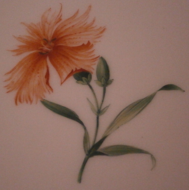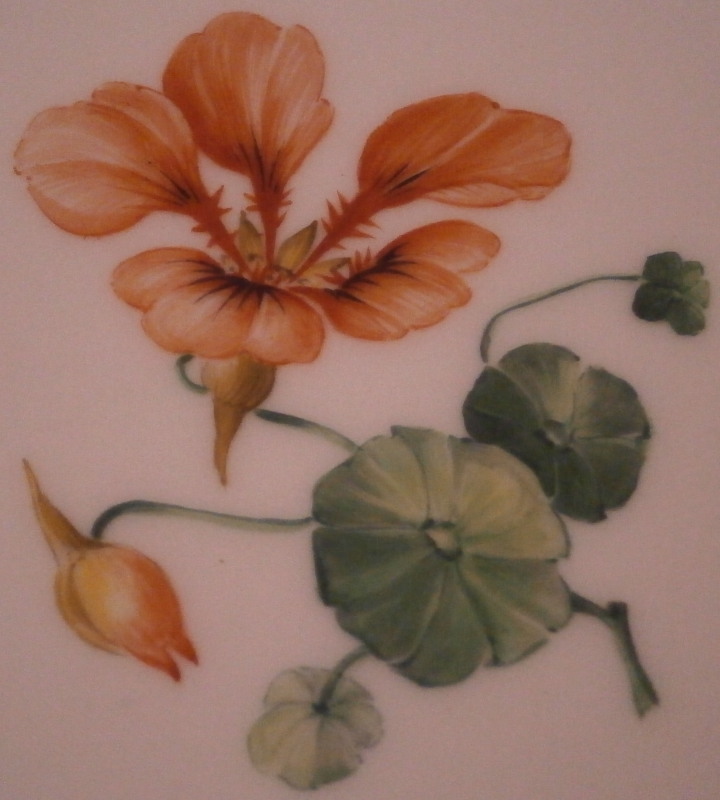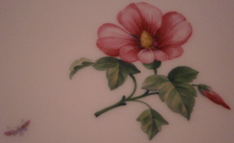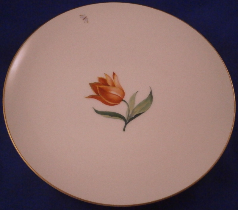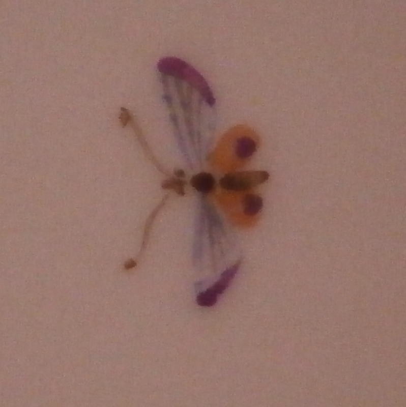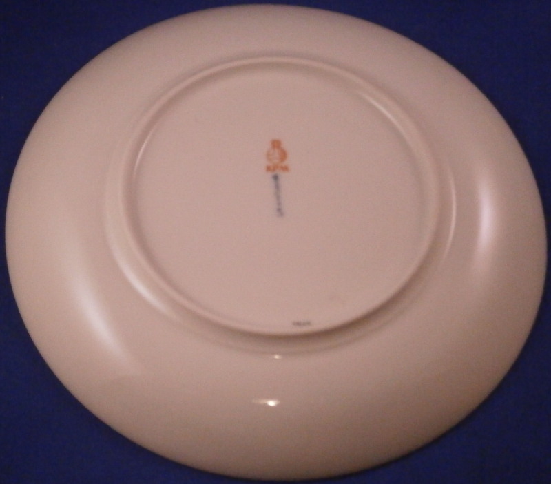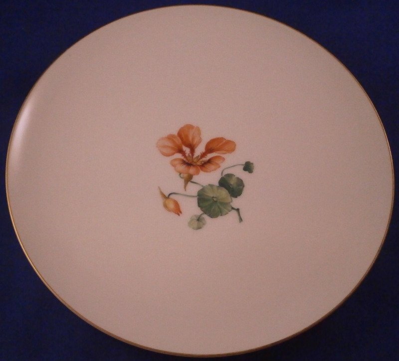 This is a nice set of 6 dessert plates made by KPM right around the mid 20th century. I think it is in the Urbino but could also be the Berlin design. Each plate is hand painted with a nice flower in the center and some also ahve a single little butterfly to cover a small flaw which was often used by them on this service. Each piece has a simple yet elegant shape with a gold trim to the edge. All pieces are in superb condition and are marked underneath with the under glaze blue scepter with the S under it for the Selb factory, the red orb mark as well as some black and impressed numbers as shown. The plates are 0.875 inches tall and have a diameter of 7.5 inches. Please email me for more information or other pictures.