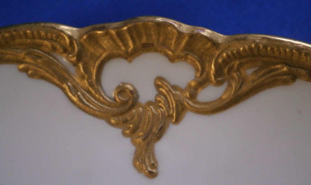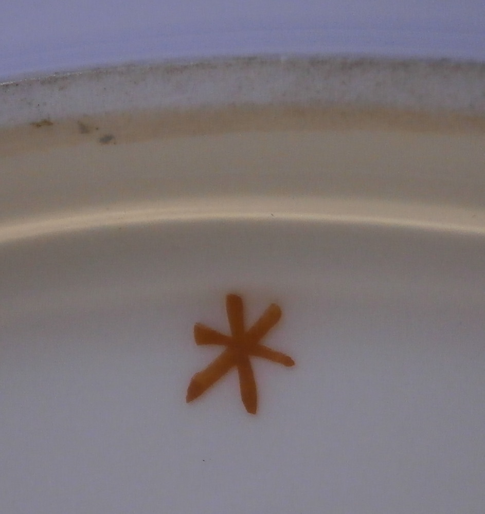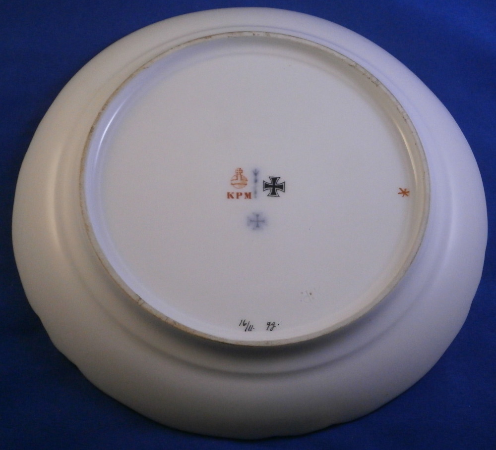 This is a cute plate made by KPM in the early 20th century. It is hand painted with a superb design in the center of a piece of corn as well as two gooseberries and some pinks flowers (heather maybe) and off course that amazing gold trim on relief design which makes these plates from the Neuzierat series so special. The combination is probably my favorite plate deisgn. The painting is top notch and the rim trim is just spectacular. The plate is in perfect conditionand it displays perfectly. The piece is 7.375 inches in diameter so the smaller version and 0.875 inches tall. The plate is marked underneath with the under glaze blue scepter, the red orb mark, some black numbers, a painter's mark, the usual impressed marks of this period as well as the under glaze blue and over glaze black Iron cross used during the period of WWI. I have other matching plates if anyone would like a pair or a set of these. Please email me for more information or other pictures.