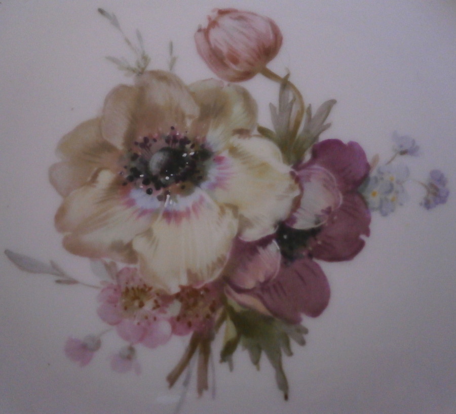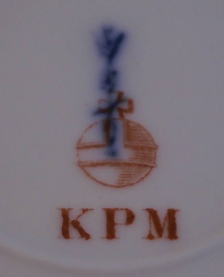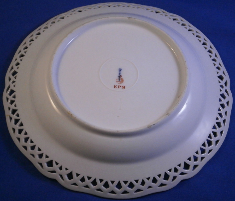 This is a really nice plate made by KPM in the early 20th century. It is hand painted with a superb flower design in the center of two anemones with a flower bud and some other small flowers and a couple of leaves. The rim has a nice reticulated design to it with gilding in between. It a relaly nice looking plate! The Weichmalerei colors KPM used during this period are among the best ever in my view! The plate is in perfect condition which is always nice. The piece is 7.75 inches in diameter and 1.125 inches tall. The plate is marked underneath with the under glaze blue scepter, the red orb mark, two artist's marks and the usual impressed marks of this period. Please email me for more information or other pictures.