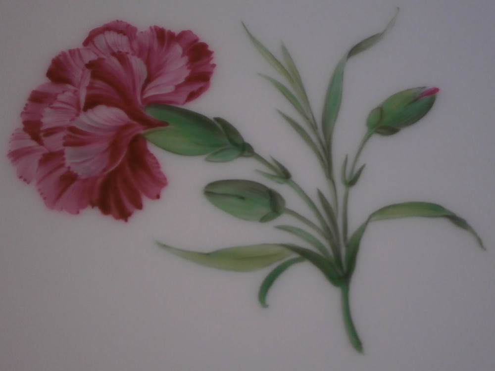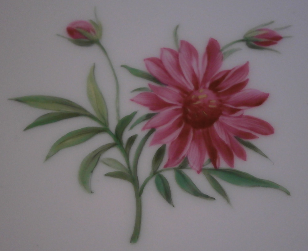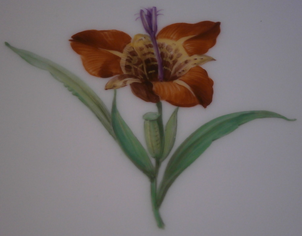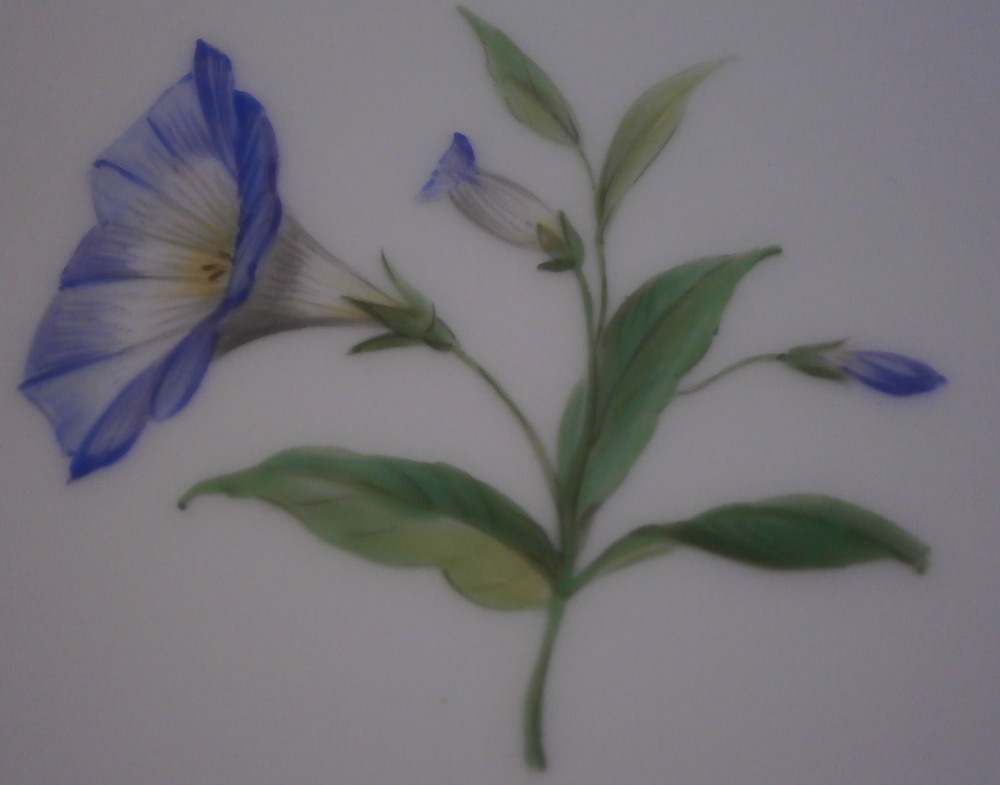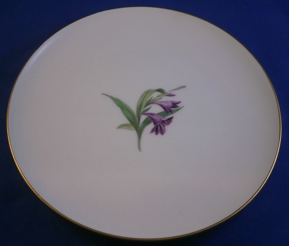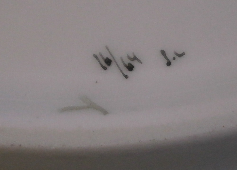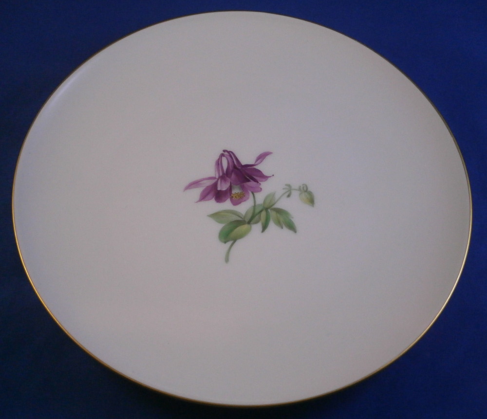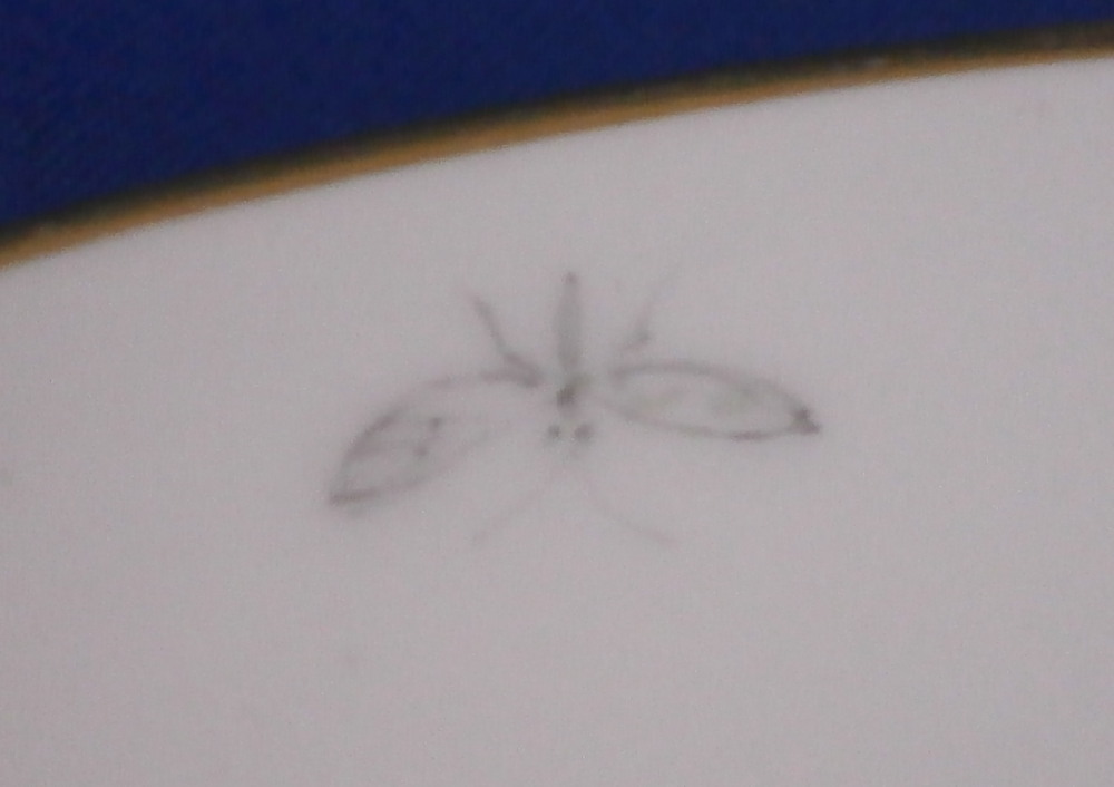This is a nice set of 6 dessert plates made by KPM right around the mid 20th century. I think it is in the Urbino but could also be the Berlin design. Each plate is hand painted with a nice flower in the center and two also have a single little bug to cover a small flaw which was often used by them on this service. Each piece has a simple yet elegant shape with a gold trim to the edge. All pieces are in superb condition and are marked underneath with the under glaze blue scepter, the red orb mark as well as some black and impressed numbers as shown. The plates are 0.875 inches tall and have a diameter of about 7.875 inches. Please email me for more information or other pictures.