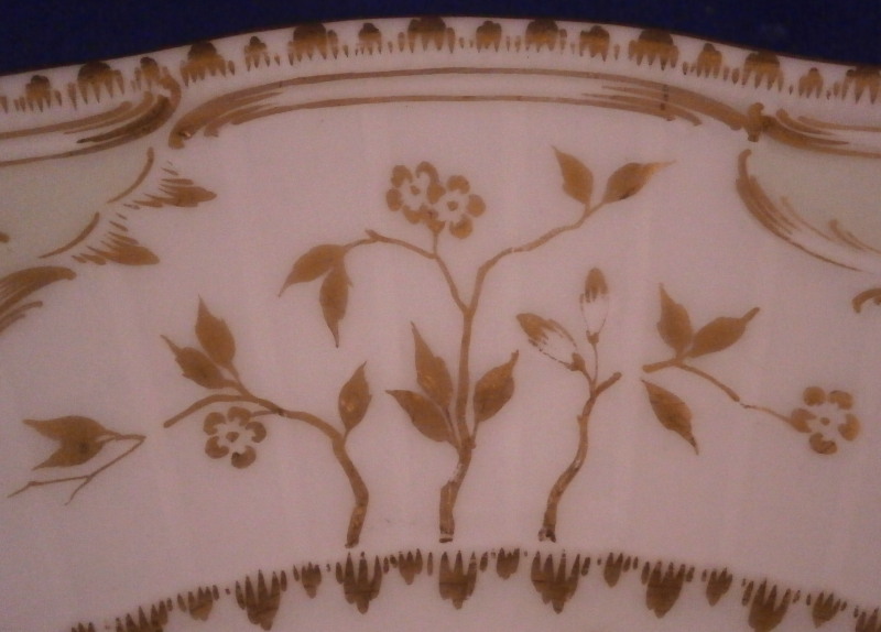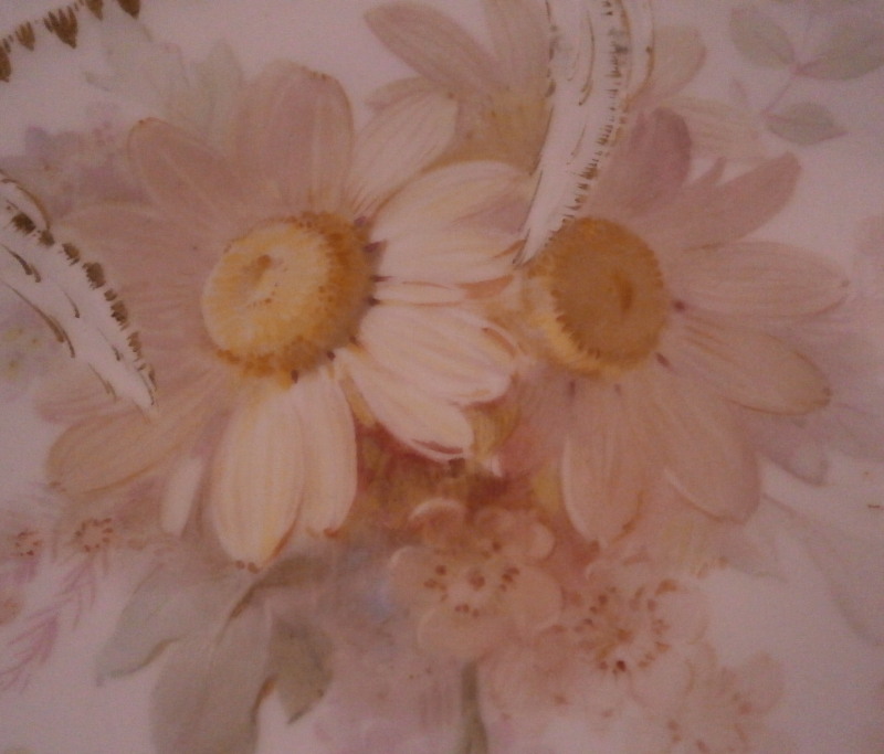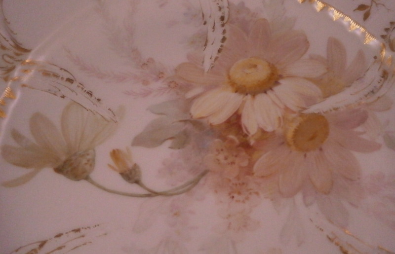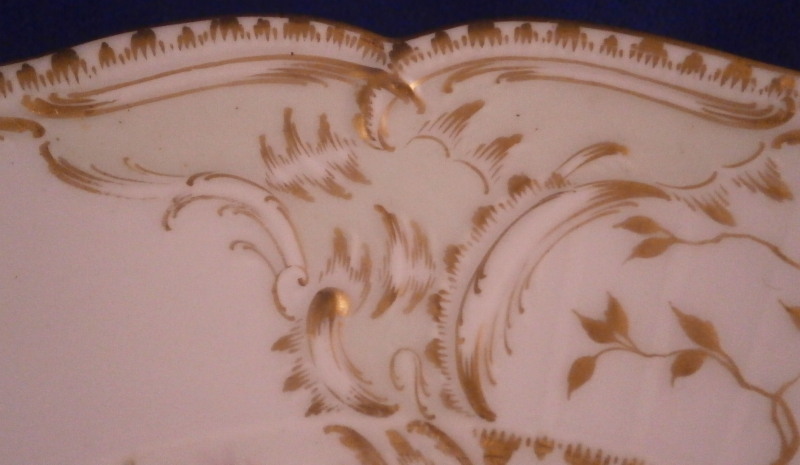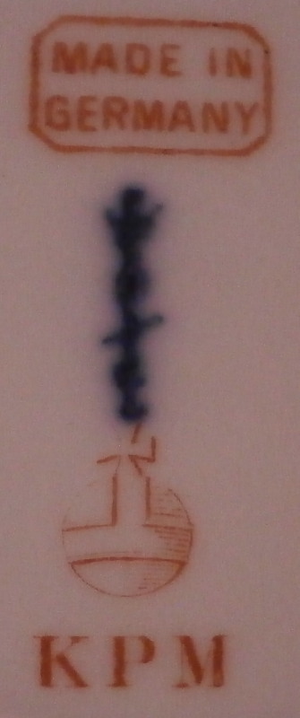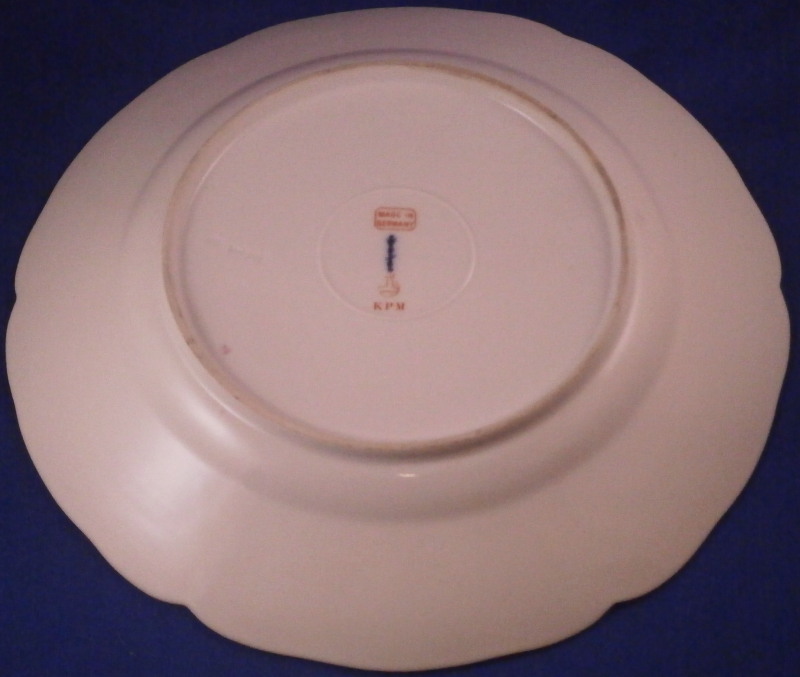 This is a superb plate made by KPM in the early 20th century. It is hand painted with a nice floral arrangement in the center including some yellowish blossoms (could be some sort of Daisy) with some more flowers and greenery around in the Weichmalerei style. The rim has three panels of golden twigs and some very fancy gold work in between with a light green ground color in the raised gold parts along the rim. Some of that gilding juts out into the well of the plate. The gold work is super detailed and amazing. A truly stunning and elegant plate and not something one sees everyday either. The plate is in perfect condition with some very very minor wear in a spot or two. The piece is marked underneath with the under glaze blue scepter mark as well as the over glaze red KPM orb mark showing it was painted by KPM and the usual impressed and painter's / gilder's marks as shown. The plate is 1.25 inches tall and 9.125 inches in diameter. Please email me for more information or other pictures.