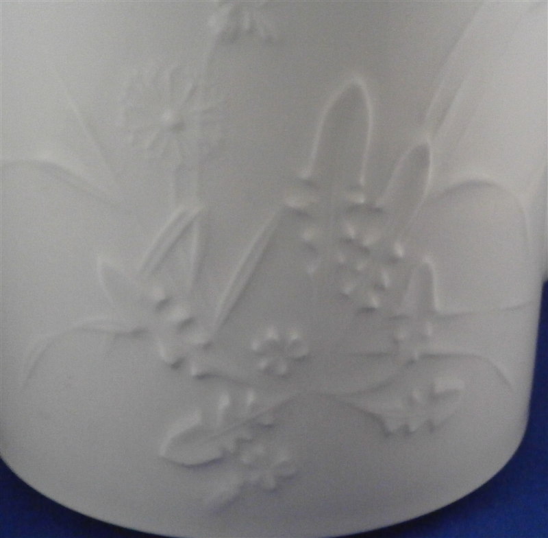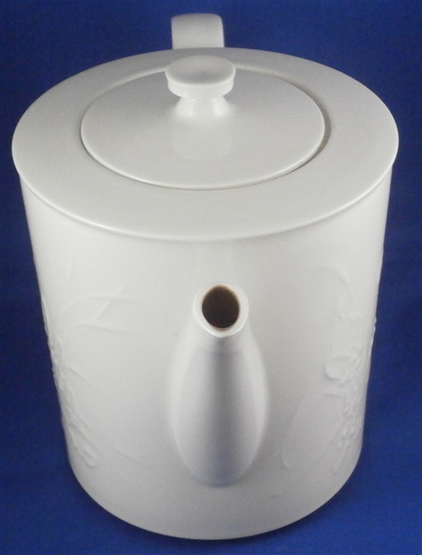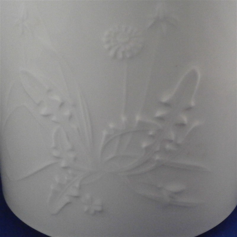 This is a coffee pot made by KPM in the 20th century right after WWII at the Selb location. The design is called Feldblumen (field flowers) and is not a very common one but one of the best ones you can actually use and put in the dishwasher as any painted design would not hold up in a dishwasher. It has some nice relief flowers on either side including dandelions as can be seen in the pictures and a nice shape to it. This is the plain version without the gold trim. The pot is in great condition with the lid having one of the pins missing that holds it in place when you pour but it still works with the one pin. It was used and could use a cleaning. The piece is marked underneath with the underglaze blue scepter with the S underneath as well as the usual impressed marks of the period. The pot and lid are about 6 inches tall, 8.5 inches from handle to spout and 4.375 inches in diameter. Please email me for more information or other pictures.