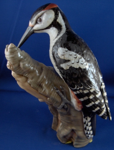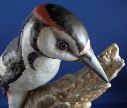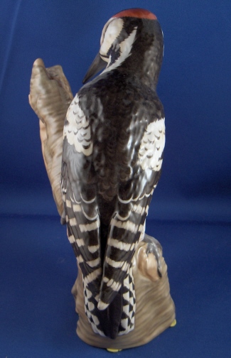 This is a woodpecker bird made by KPM in the 20th century. It is handpainted with great attention to detail and looks real. He sits on a treestump. The bird is in perfect condition and 9.25 inches tall, 3.75 inches wide and 6.5 inches deep. He is marked underneath with the underglaze blue scepter as well as the red orb mark. Please email me for more information or other pictures.