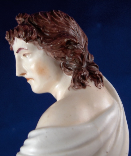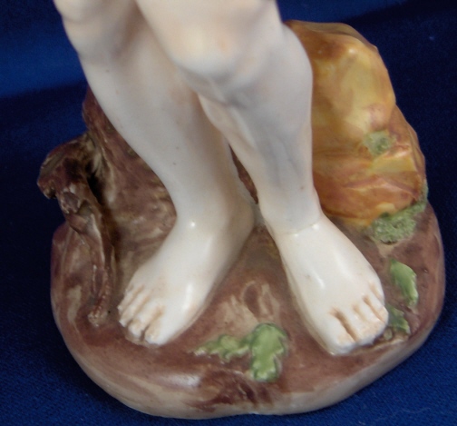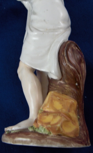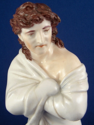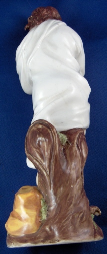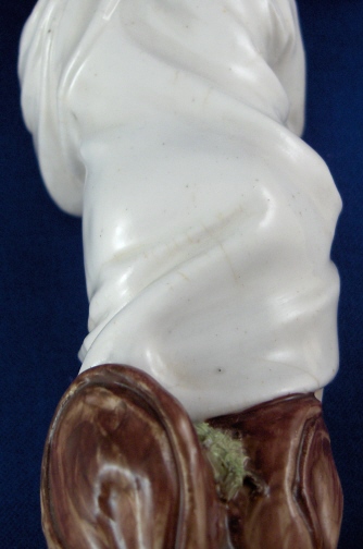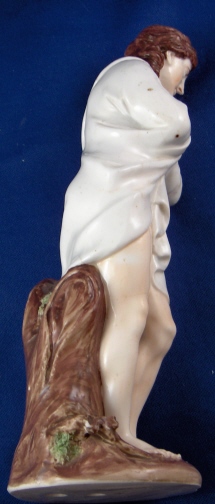 This is a very rare figurine made most likely by Le Nove aka Nove di Bassano founded by Pasquale Antonibon but there is a small chance it was made by either Naples (Real Fabbrica Ferdinandea) or Buen Retiro though I doubt it. The piece likely dates to about 1775 and is made of Softpaste porcelain. It is of a gentleman wrapped in a white cloth standing on a rock and soild base with some greenery attached. He is likely meant to signify Winter - one of the four seasons. The piece is very well modeled especially his hair and the cloth. Quite the rare figurine! The piece is in pretty much perfect condition with some very very minor wear and some faint lines in the surface of the porcelain common on softpaste porcelain! There is a minor firing crack on the top of his left foot. All issues stem from the making and he is pretty much in the same shape as when he left the factory which is amazing! The figure is unmarked but that seems to be the norm - it does have two airholes underneath a shown. The piece is 7.375 inches tall, 2.5 inches wide and 2.625 inches deep. Please email me for more information or other pictures.