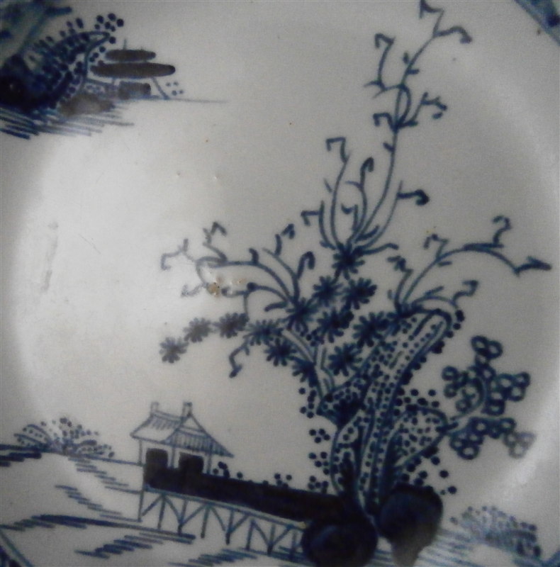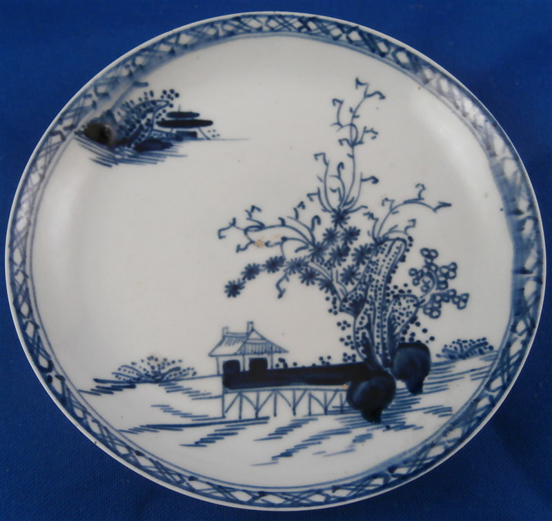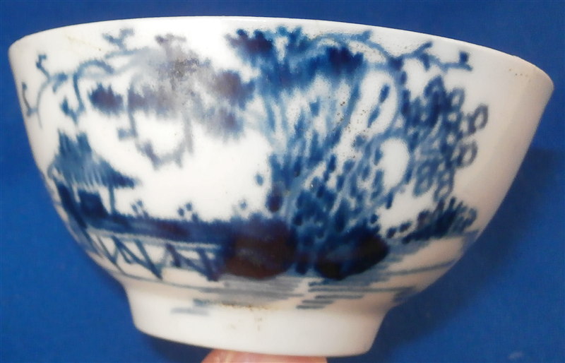 This is a cup and saucer made by one of the Liverpool factories in the 18th century. The factory being Philip Christian in this case. It is made of a type of softpaste porcelain and nicely handpainted with an underglaze blue pattern with buildings, funky trees and a long bride hence its name - Long Bridge pattern. Nice blue trim to the rim. The cup and saucer are in great condition with some manufacturing impurities and the saucer is out of round from the firing a bit which you can see in the pictures. The set is unmarked which is the norm. The porcelain is extremely thin and fine which is amazing! The teabowl is 1.5 inches tall and 3 inches in diameter. The saucer is 0.75 inches tall and 4.75 inches in diameter. Please email me for more information or other pictures.