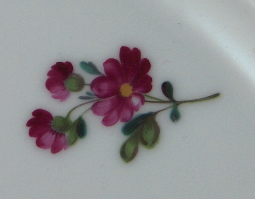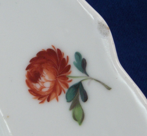 This is a rare plate made by Oude Loosdrecht between 1771 and 1784. Oude Loosdrecht was founded by Johannes de Mol in 1771 with what was left of the Weesp factory and was closed in 1784 when he died. The plate is handpainted with a lots of scattered small flowers all over and has a nice rim as well. It is in great condition with one small rim chip as shown which is not bad at all. The piece is marked with the underglaze blue M.o.L with the star underneath. The plate is 1.375 inches tall and 9.25 inches in diameter. Please email me for more information or other pictures.