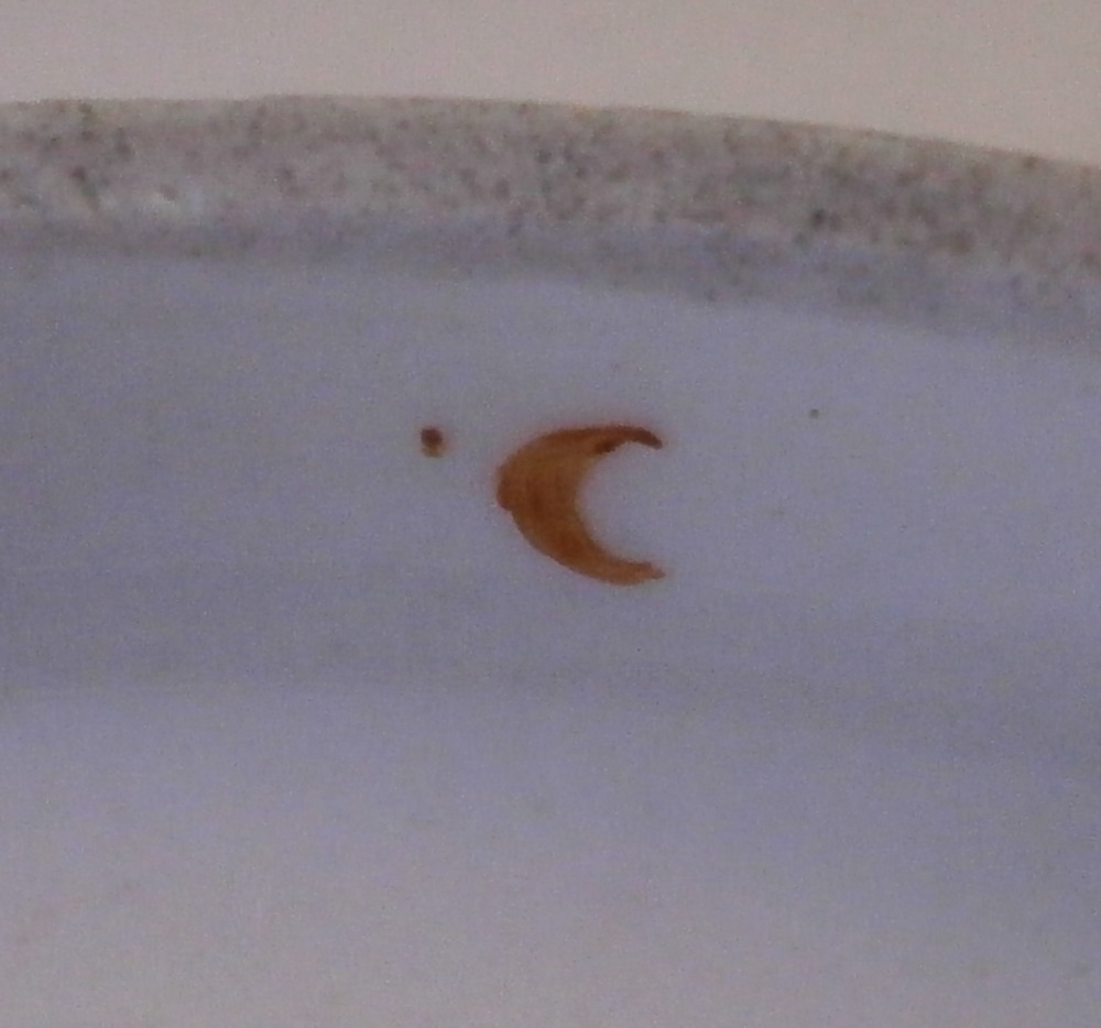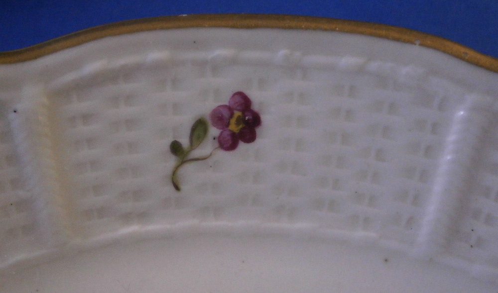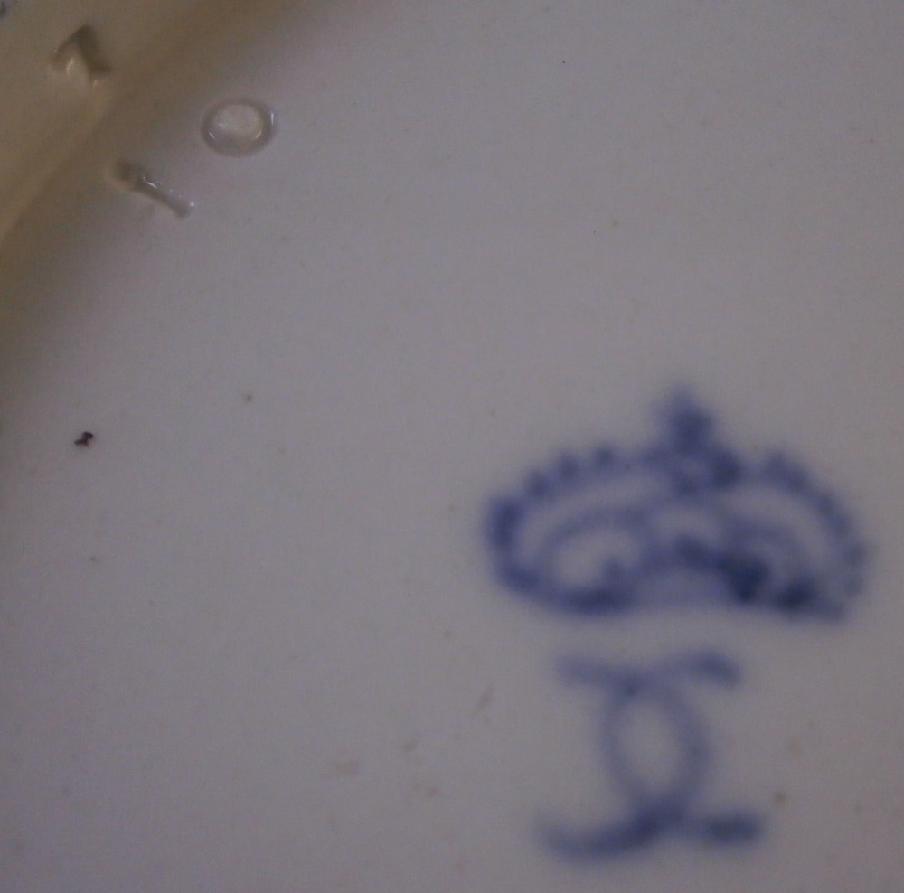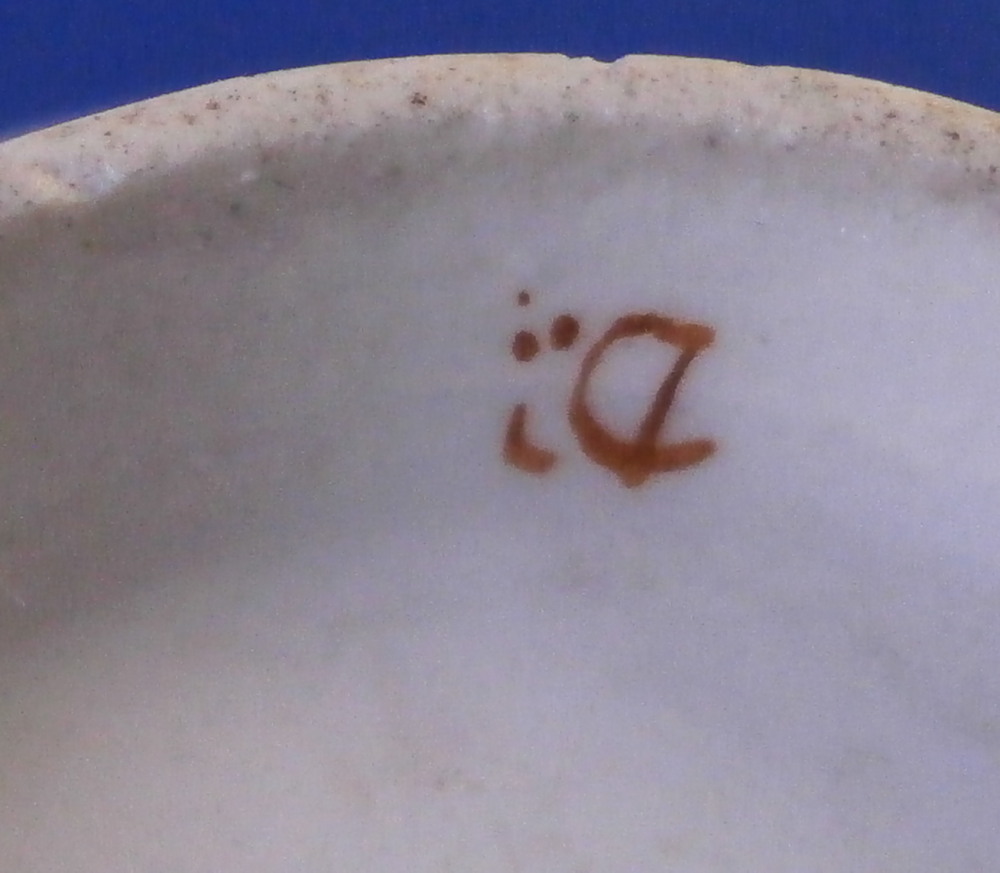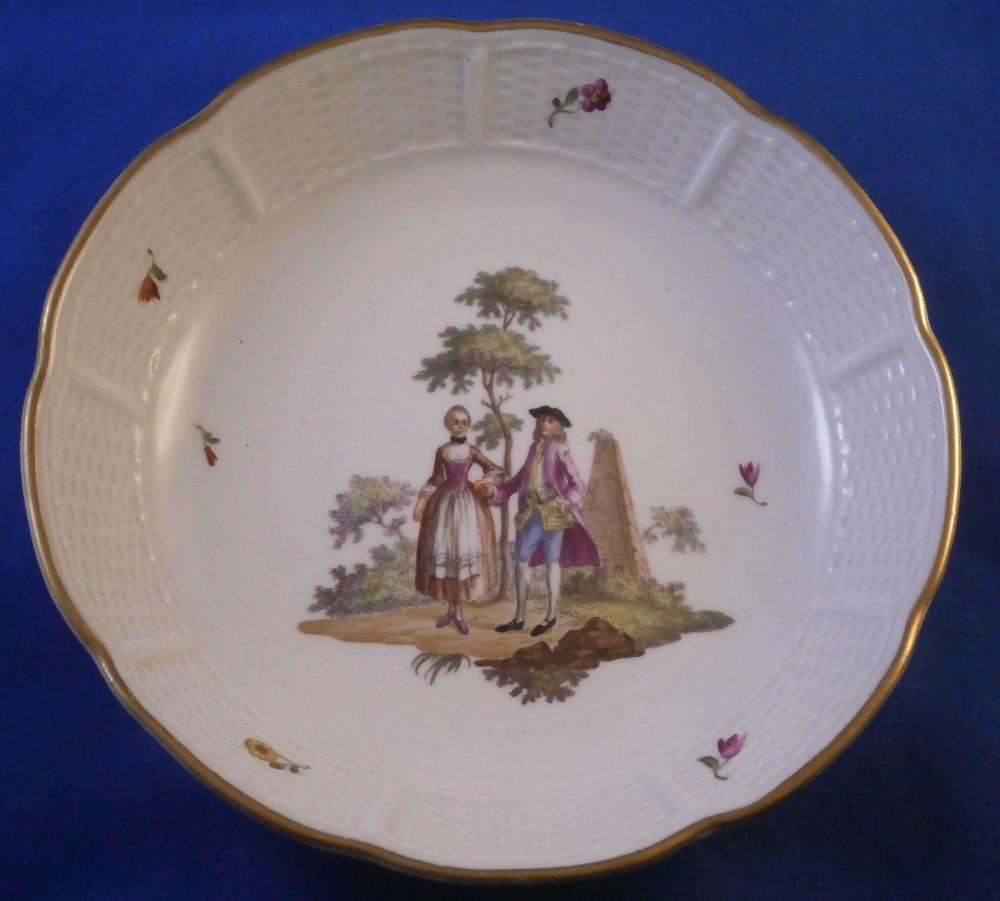 This is a cup and saucer made by Ludwigsburg in about 1765. The set is hand painted with a really nice polychrome Watteau style scenes of a couple in a landscape background. Some small flowers as well and a gold trim. Great handle shape also highlighted with a bit of gilding. Both the cup & the saucer are marked with the under glaze blue CC under the crown mark as well as impressed 4 and I3 and red D:. under the cup and impressed 7 and 10 and red half moon (painters mark of Ihle) under the saucer. The cup is 2.5 inches tall and 2.5 inches in diameter. The saucer is 5.5 inches in diameter and 1.125 inches tall. The set is in good condition with a chip to the inside rim of the cup as shown. This set came with the teapot I have on this site and they match perfectly so they are likely from the same service. Please email me for more information or photos.